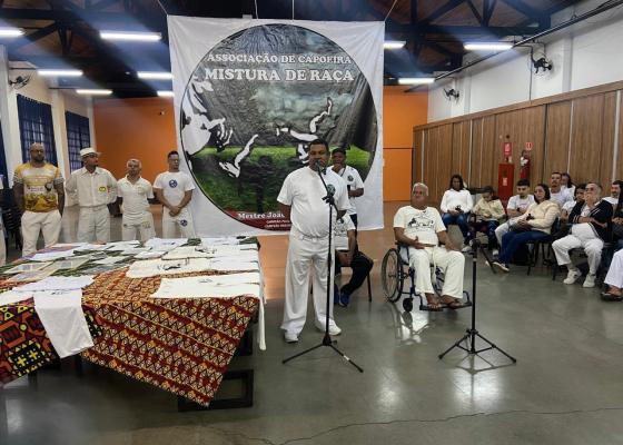 A capoeira foi criada pelos escravizados africanos no Brasil como forma de resistência e libertação, disfarçada sob a aparência de dança. Hoje ela é reconhecida como patrimônio cultural imaterial da Humanidade. Para Jorge Caniba Batista dos Santos, subsecretário da Igualdade Racial de Guarulhos, trata-se de uma rica expressão cultural afro-brasileira que une dança, música, cultura popular e brincadeira. Seus movimentos ágeis e criativos, executados com pés, mãos e acrobacias, tornam-na única no mundo.