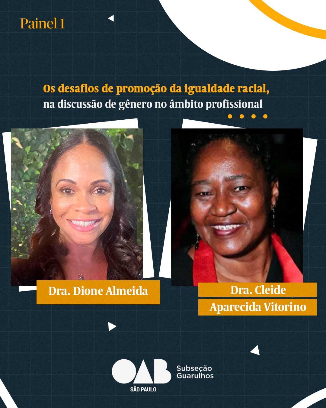 Palestrante: Profª. Cleide Aparecida Vitorino - mestre em Direito e doutoranda (Função Social do Direito e Direito Constitucional FADISP 2017/2019); bacharel em Direito pela Faculdades Metropolitanas Unidas (1992); especialista em Direitos Humanos (FGV - RJ), em Direito Administrativo (UniFMU), em Gestão em Políticas Públicas (EACH-USP - 2012); doutoranda em Ciências Jurídicas e Sociais pela Universidade de Morón (Argentina). Especialista em Diplomado Internacional e em Direitos Humanos (PUC SP/Espanha), em Direito Político Processual Eleitoral (EJEP - 2020), em Direitos Indígenas (PUC - RJ), em Advocacia 5.0 e em Novas Tecnologias, Mediação e Solução de Conflitos (Universidade de Salamanca - USAL - Espanha2022/2023); servidora aposentada do Tribunal de Contas do Estado de São Paulo (1986 - 2019); especialista em Novas Tecnologias e Mediação e Solução de Conflitos (USAL – Espanha - 2022 e 2023). Docente Faculdade Zumbi dos Palmares (2015/2023) e Coordenadora do Centro de Estudos e Pesquisa em Intolerância, Justiça Racial e Ambiental (2022/23), Escola do Parlamento/SP e Escola Superior da Advocacia (ESA); pesquisadora e consultora da Casa das Áfricas - Amanar e das Associações e Coletivos das Diásporas Africanas e de Ascendência Africana. Conselheira Gestora da Coordenadoria da População Negra (CONE - São Paulo - 2009/ 2012); mentora, curadoria e conselheira fiscal Humanitas 360; membro do Conselho Superior Feminino (Confem) da Fiesp e mentoria Programa ELAS NA INDÚSTRIA - Fiesp. Advogada voluntária no Centro de Referência dos Direitos Humanos de Prevenção e Combate ao Racismo do Município de São Paulo (2011 a 2013); palestrante, articulista e advogada com atuação na área de Direitos Humanos transversalmente nas questões temáticas etnicorraciais e africanidades, teoria crítica racial, questões discriminatórias, direitos migratórios e direitos políticos e eleitorais, incluindo o terceiro setor. Parecerista "ad doc" da Revista da Defensoria Pública da União, Revista África e Africanidades (Q. A4), Revista Mosaico FGV/CPDOC (Q. A3) e Revista Raça Brasil. Mediadora sócio intercultural, on-line (ODR) e extrajudicial, utilizando- se as estratégias de advocacy nas temáticas de novos sujeitos de direitos, vulnerabilidades e de justiça racial e restaurativa e outras áreas correlacionadas.