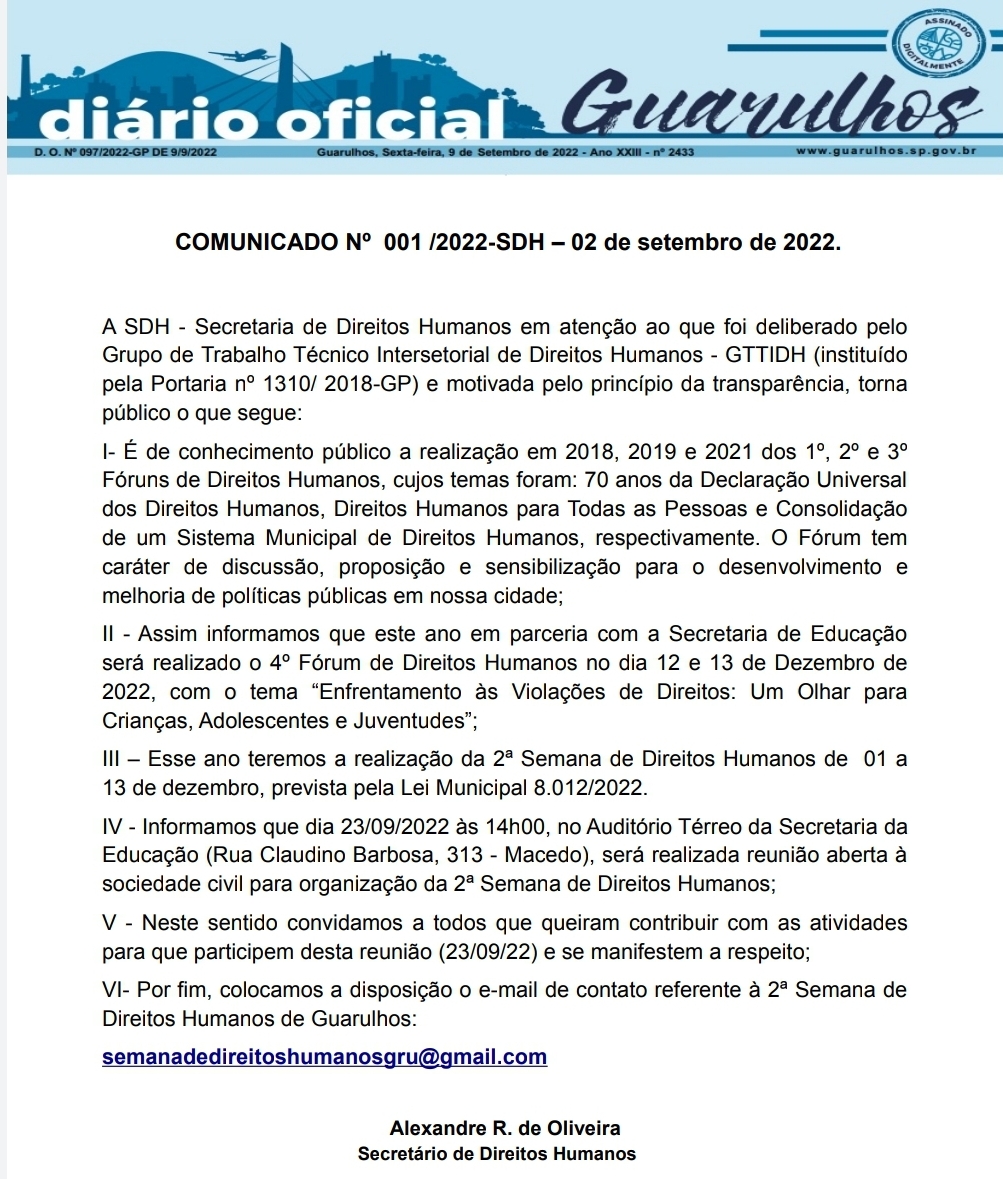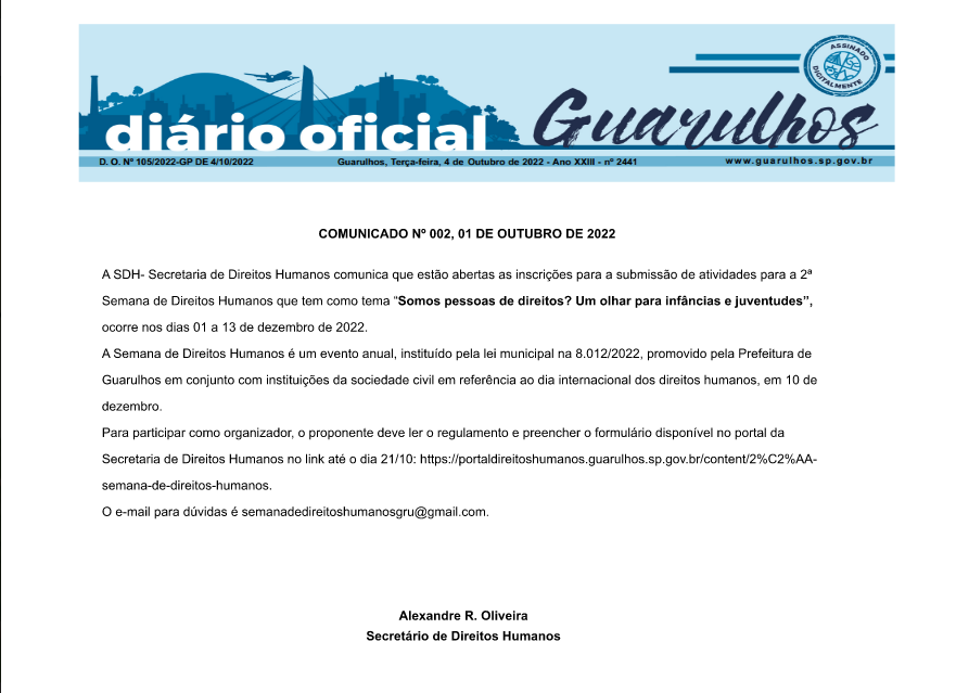 Inscrição de Atividade Descentralizada na 2ª Semana de Direitos Humanos de Guarulhos.