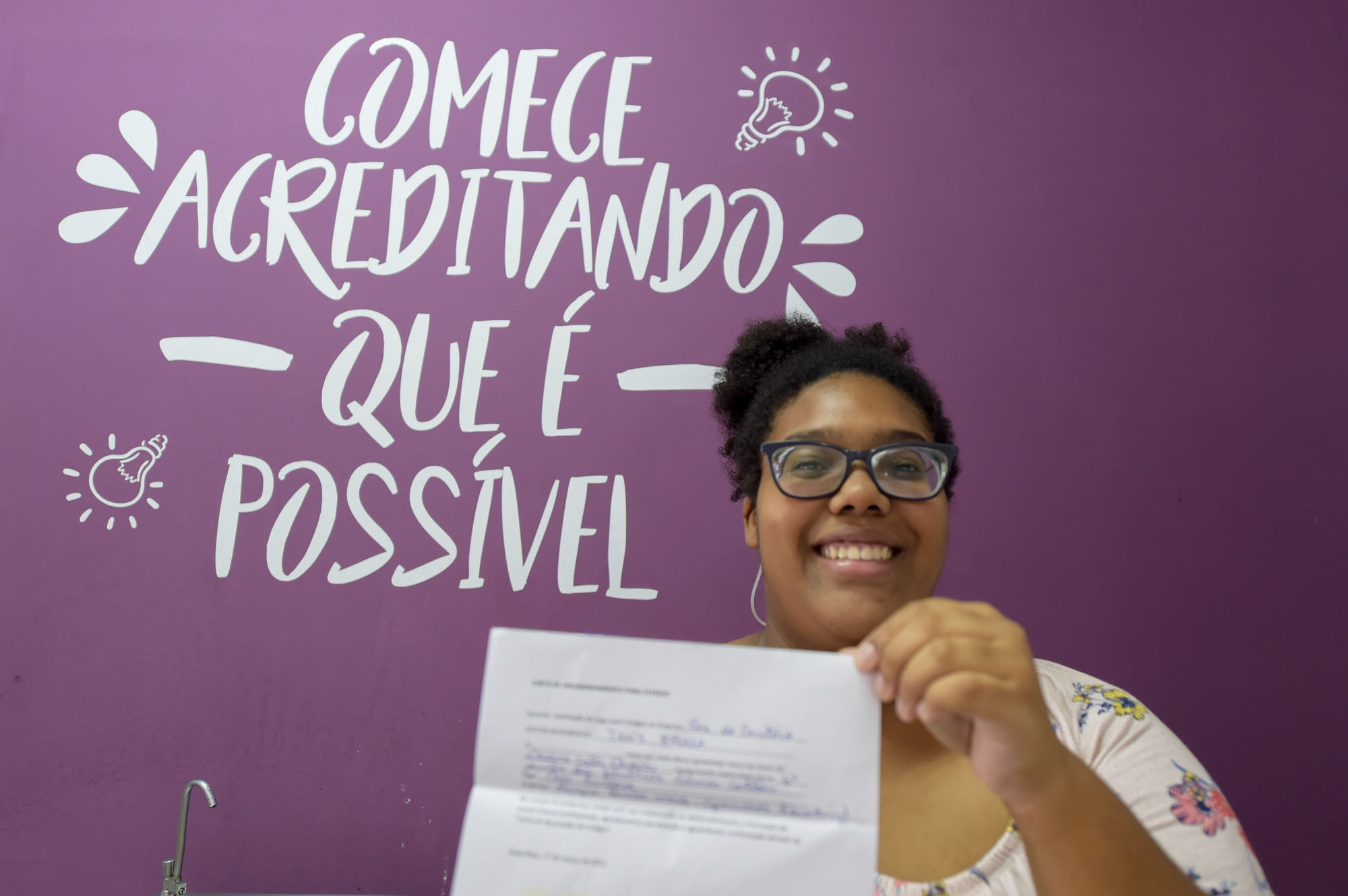 Com o ensino médio concluído em 2017 e atualmente matriculada no sexto semestre do curso superior de contabilidade, Daiane Costa Oliveira, 21 anos, vive com a mãe e uma irmã no Parque das Nações, região do Pimentas. A participante do programa foi encaminhada à entrevista de estágio de auxiliar administrativo. “Gostei muito de todo o processo. É muito prático, organizado e aumenta a chance de achar uma colocação”, disse Daiane.