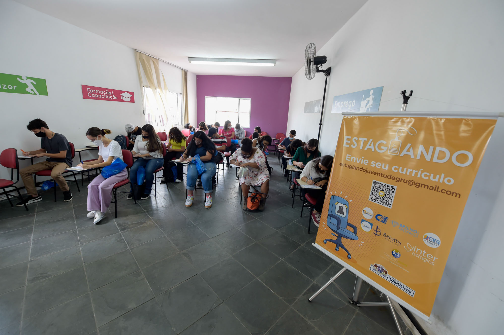 Um público de 163 estudantes do ensino médio, técnico e superior participou nesta quinta-feira (17) da quarta edição do mutirão do projeto Estagiando na sede da Subsecretaria da Juventude. Deste total, 116 estudantes foram encaminhados para entrevistas finais de estágios remunerados. A ação da Prefeitura de Guarulhos, em parceria com as empresas CEG Conecta e Instituto IGEduc, é voltada a jovens entre 16 a 29 anos.
