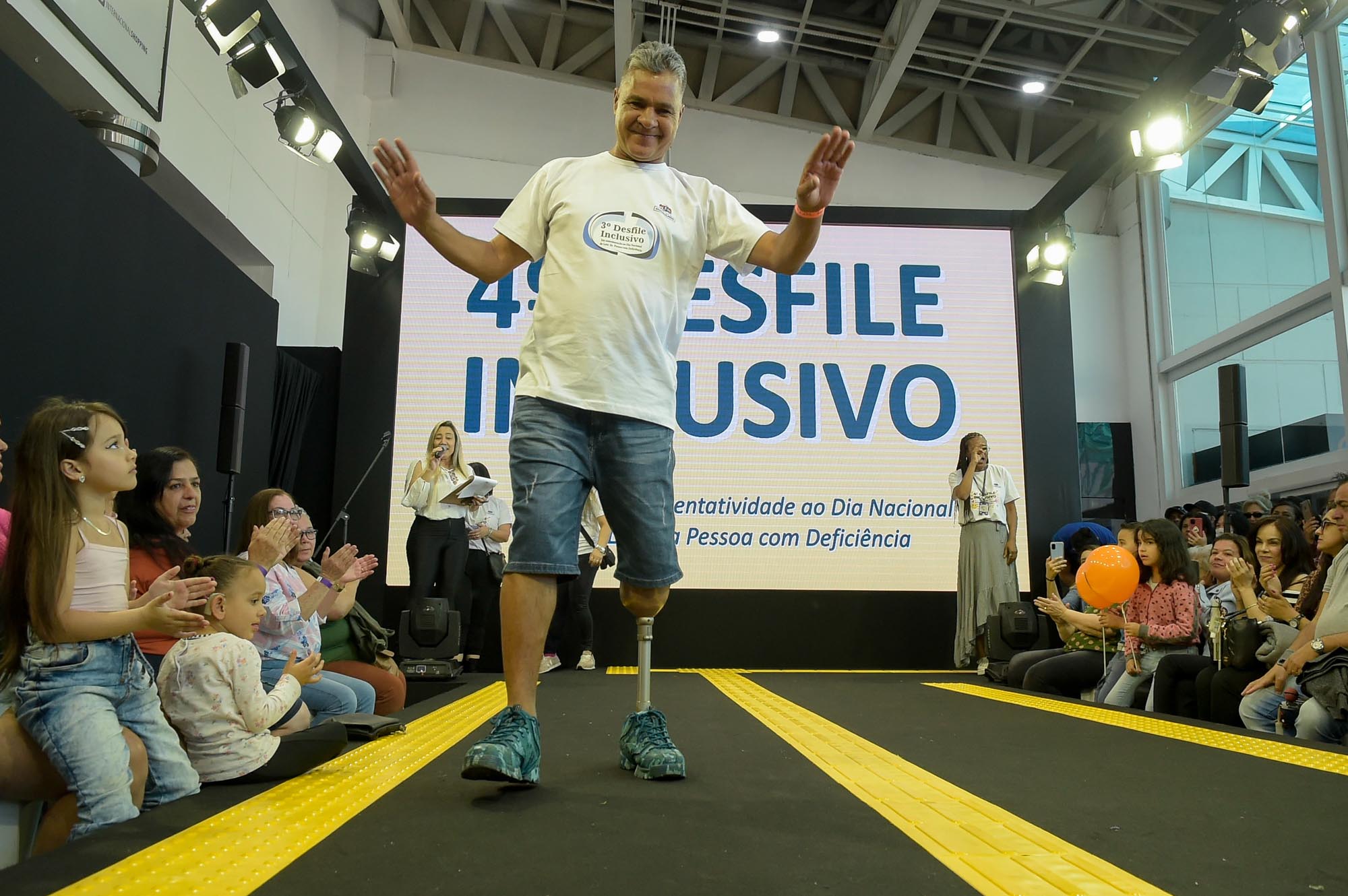 A alegria e a emoção contagiaram a plateia e os modelos que participaram do 4º Desfile Inclusivo de Guarulhos, promovido pela Prefeitura no último sábado (24) no Internacional Shopping. Com um público itinerante de três mil pessoas e uma plateia de mais de 400 pessoas, o evento mobilizou 28 modelos com algum tipo de deficiência selecionados para esta edição, que desfilaram na passarela com figurinos de lojas do shopping. Outros 20 modelos que se apresentaram em 2019 também participaram.