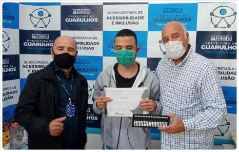 Dois alunos com deficiência visual do projeto Práticas Educativas para Inclusão Social (Peis) receberam na manhã desta segunda-feira (14) os certificados pela conclusão do curso online de soroban, nome dado ao ábaco japonês utilizando por pessoas com deficiência para realizar cálculos. Esta foi a primeira turma online, já que o curso, oferecido pela Secretaria de Direitos Humanos (SDH) de Guarulhos, precisou ser adaptado por conta da pandemia.