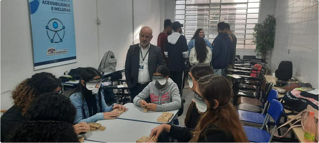 Vinte e seis alunos do Senac participaram na última quarta-feira (15) do projeto de vivência Desperte seu Olhar Inclusivo na sede da Subsecretaria de Acessibilidade e Inclusão, integrante da Secretaria de Direitos Humanos de Guarulhos. O objetivo da ação foi sensibilizar os jovens sobre a inclusão de pessoas com deficiência por meio de jogos adaptados e de conversas sobre o assunto.