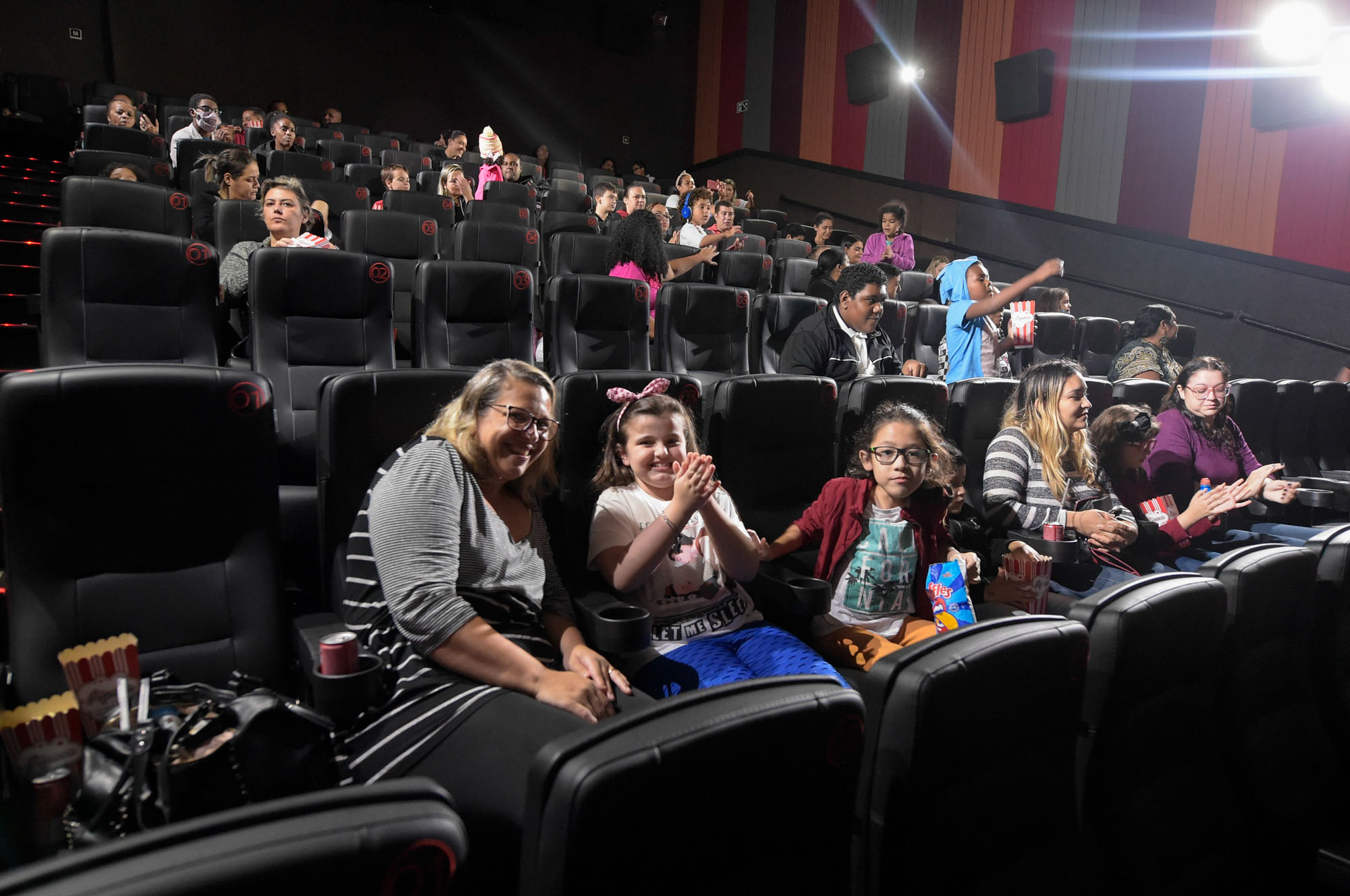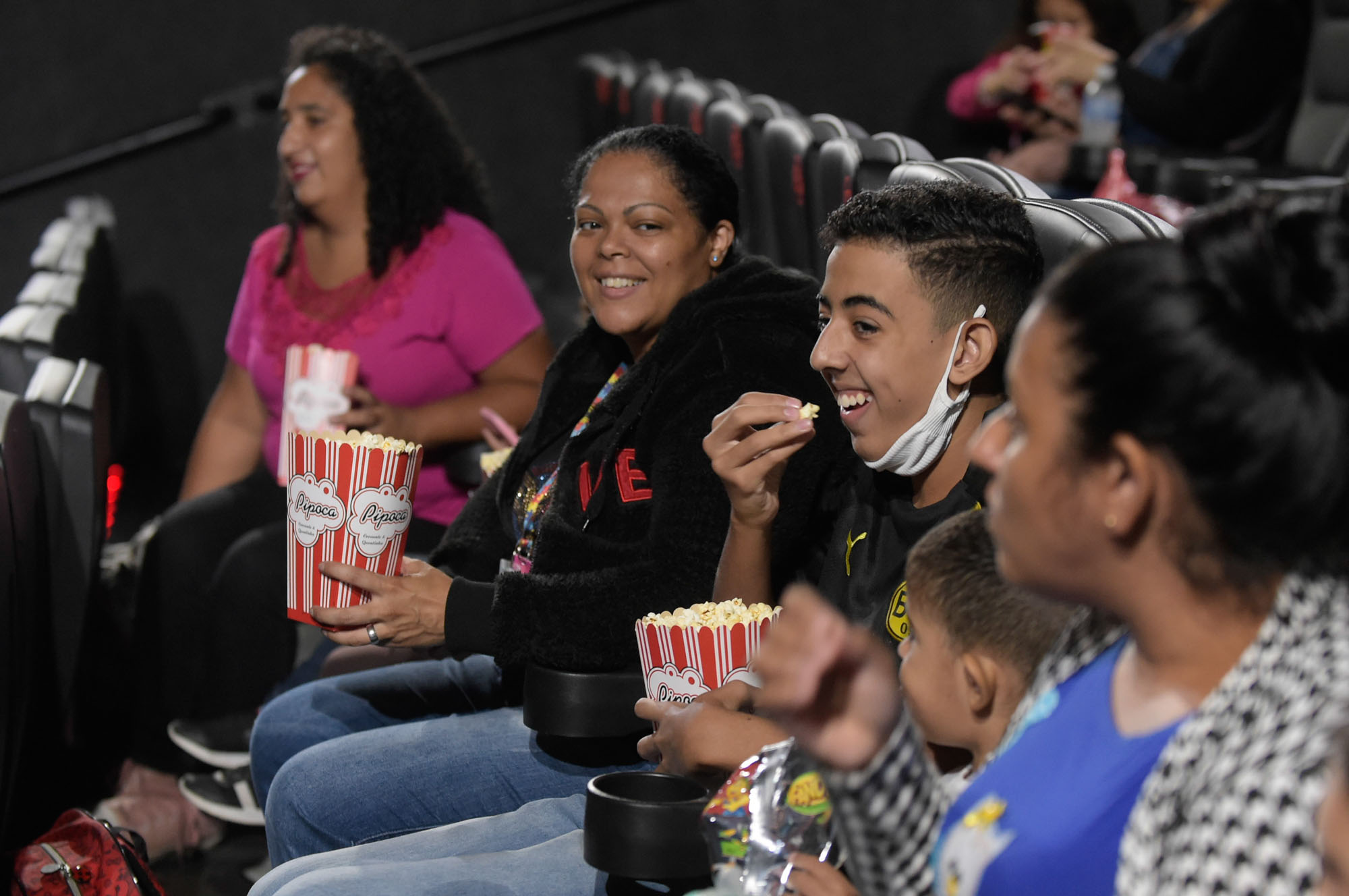 Divididos em duas salas de exibição, os participantes puderam saborear pipoca e refrigerantes gratuitos ofertados pelo Circuito Cinema durante a exibição dos filmes.