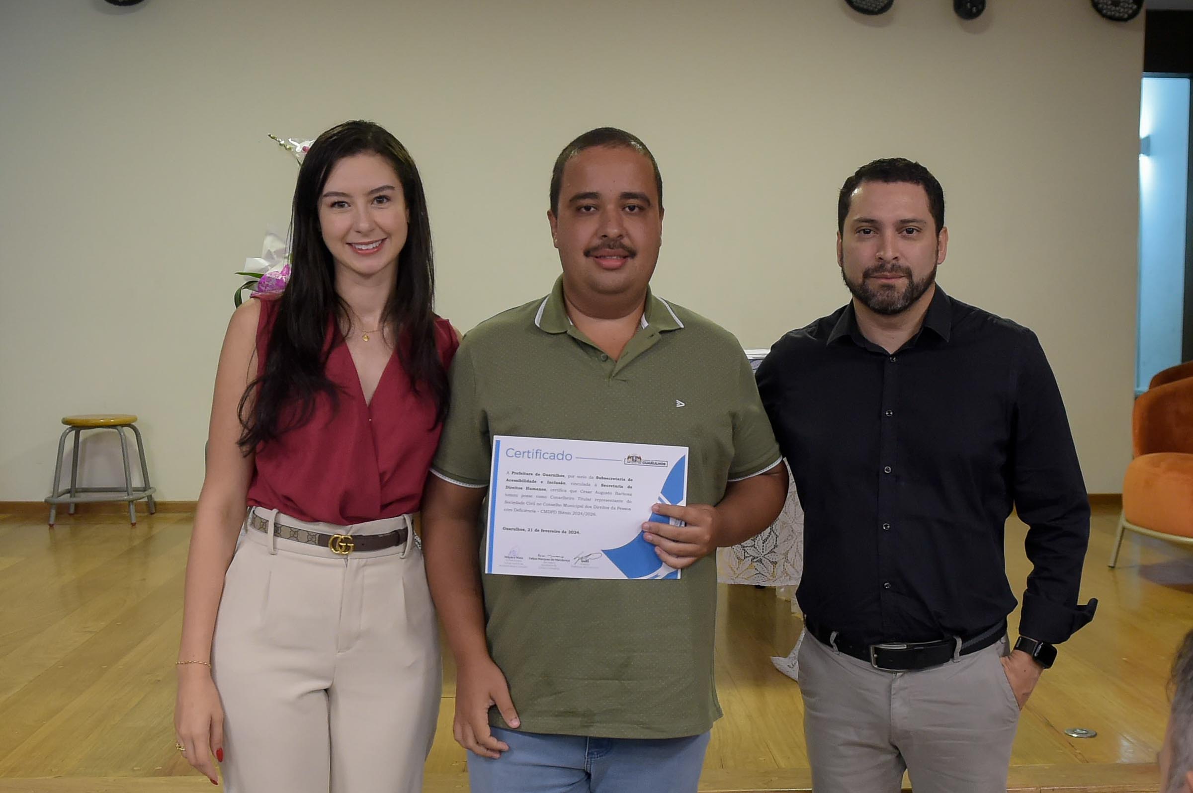 Nesta quarta-feira (21) a Prefeitura de Guarulhos, por meio da Subsecretaria de Acessibilidade e Inclusão, vinculada à Secretaria de Direitos Humanos, deu posse e entregou certificados aos membros do Conselho Municipal dos Direitos da Pessoa com Deficiência (CMDPD) para o biênio 2024-2026, em cerimônia realizada no auditório da Escola Estadual Vereador Antônio de Ré, na região do Macedo.
