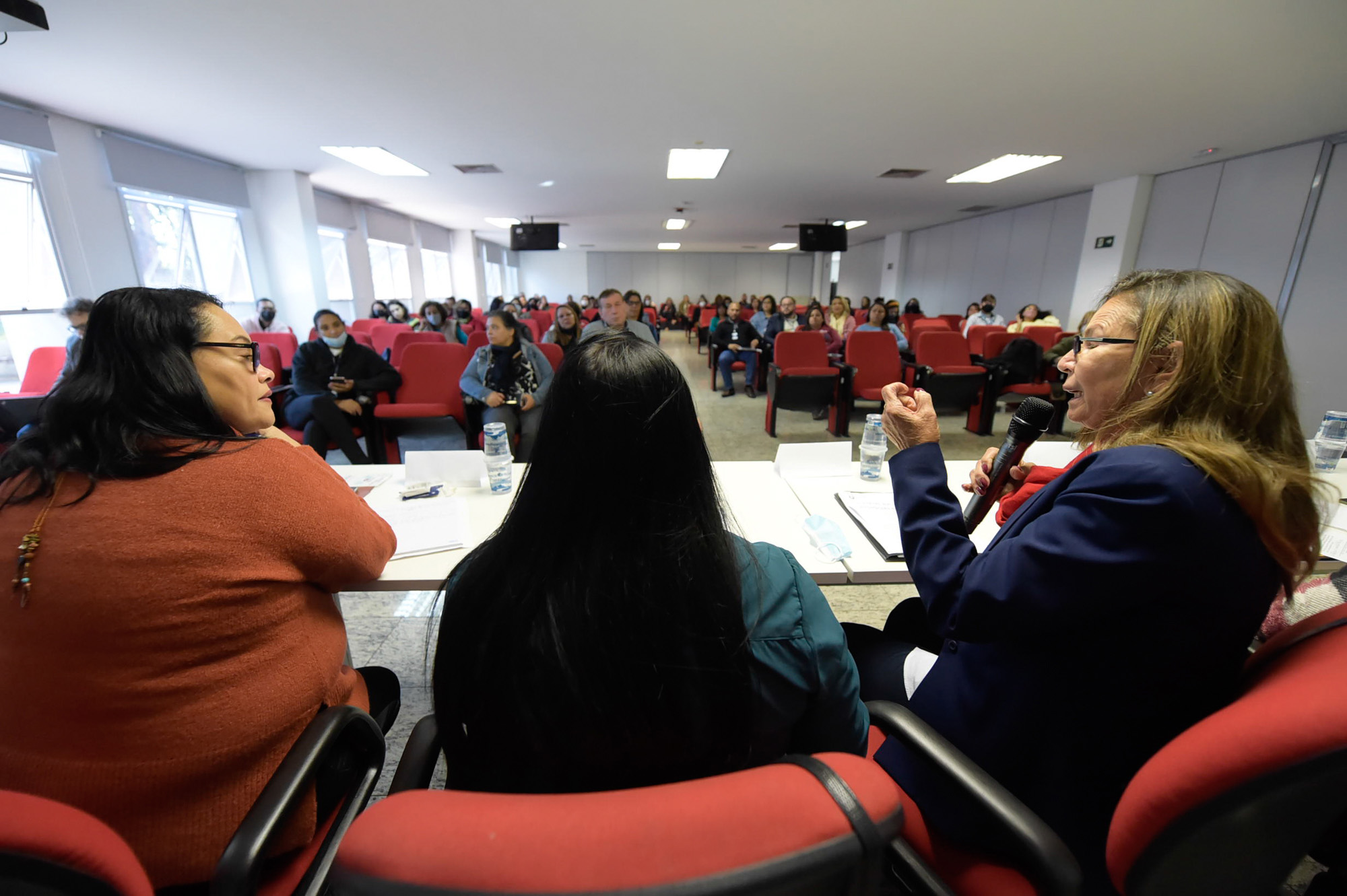 Dalila e as integrantes de sua equipe - a psicóloga Renata da Silva Batista, que atua na Casa Abrigo Florescer (um equipamento sigiloso que atende mulheres vítimas de violência em parceria com a Subsecretaria de Políticas para Mulheres), e a orientadora administrativa Thainá da Silva Tosta - relataram a experiência no atendimento às crianças e adolescentes migrantes, que apresentam dificuldades em transpor barreiras culturais como idioma, religião e hábitos, e muitas vezes em superar violências vivenciadas até a chegada ao acolhimento.