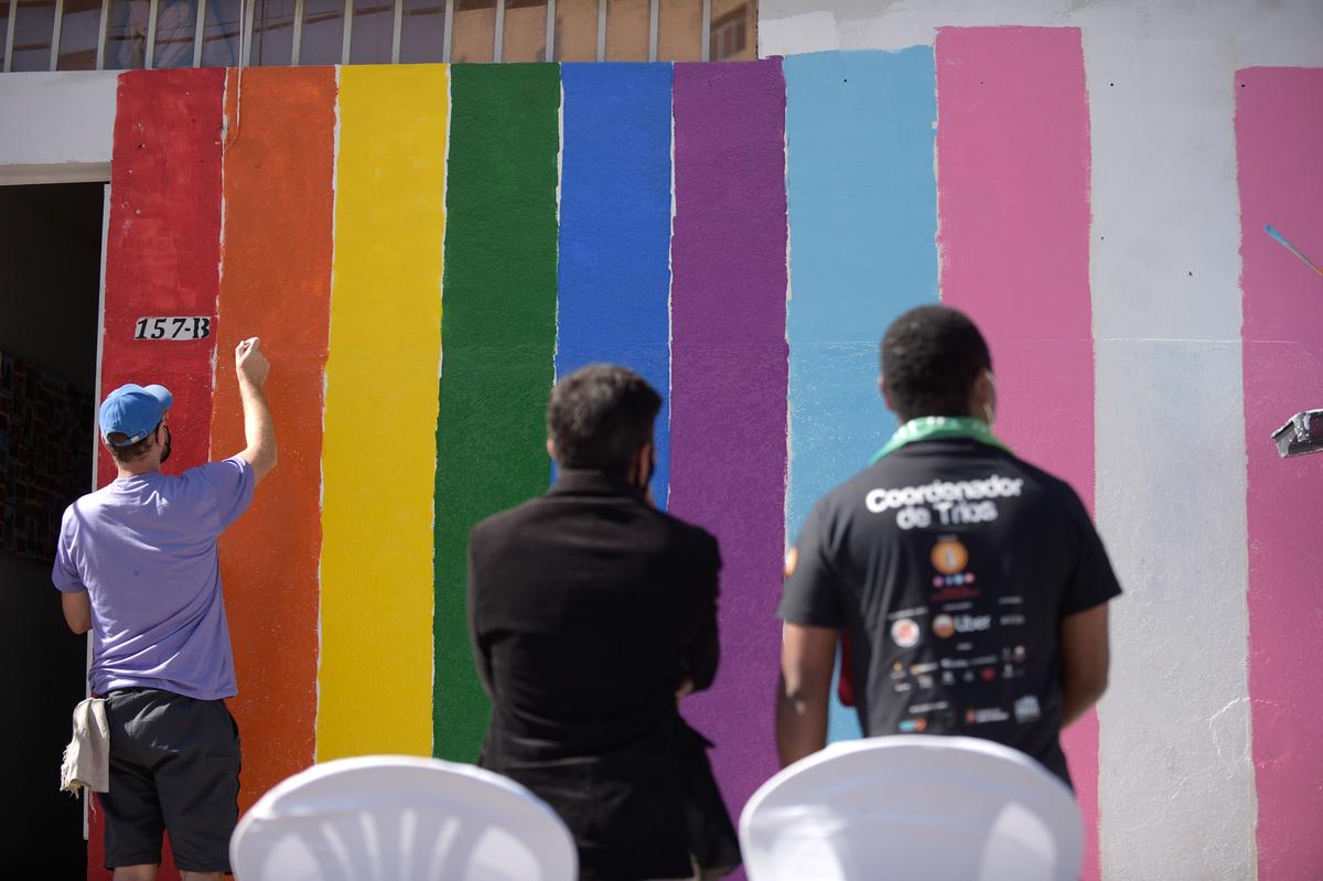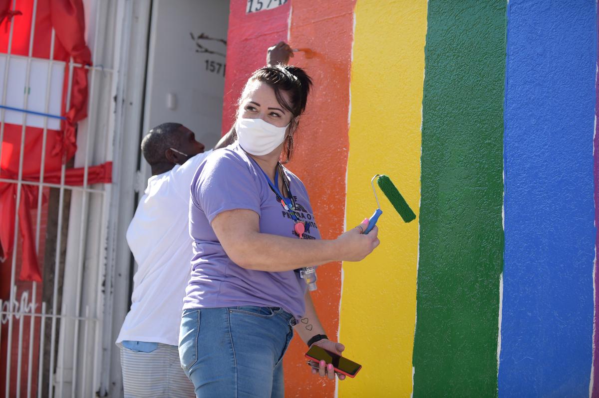 Em alusão ao Dia Internacional do Orgulho LGBTI, comemorado em 28 de junho, a Subsecretaria de Políticas da Diversidade (SPD), da Secretaria de Direitos Humanos de Guarulhos, em parceria com a Associação Marinatti, realizou no domingo (27) uma ação que reuniu cerca de cem pessoas durante todo o dia para dar visibilidade ao tema. Voluntários, além de integrantes da Secretaria de Direitos Humanos (SDH) e da Subsecretaria da Juventude (SJ), pintaram do muro da associação com as cores da bandeira LGBTI.