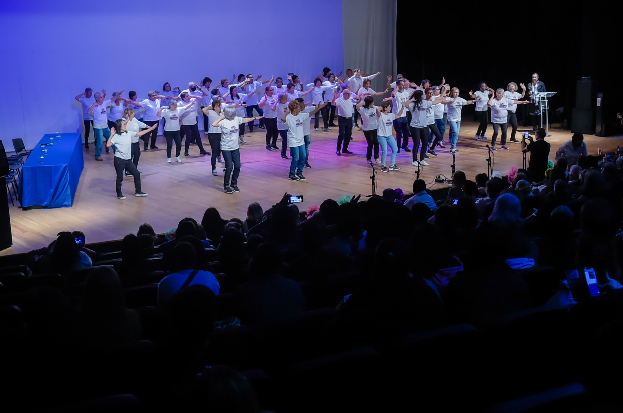 Um público animado de mais de 700 pessoas da terceira idade participou nesta sexta-feira (30) da celebração do Dia Internacional do Idoso no Adamastor. O prefeito de Guarulhos, Guti, participou da abertura do evento, que contou com apresentações de grupos da terceira idade, como os usuários dos polos das Academias na Praça 60+, do Coral Vida Nova, do Eniac e dos dois Centros de Referência do Idoso (CCI).