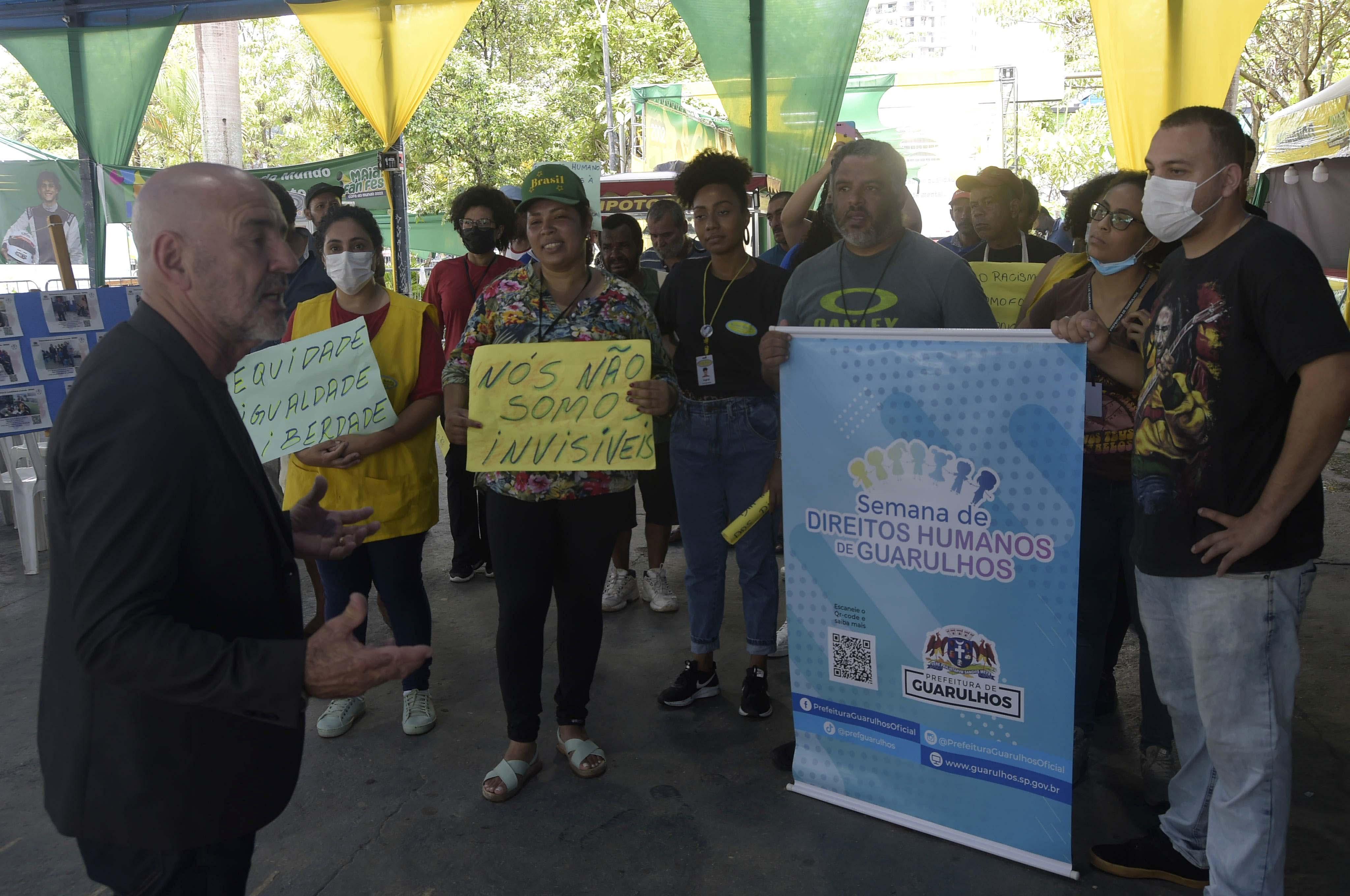 O evento contou ainda com a presença da população em situação de rua assistida por serviços da Prefeitura, as quais incluíram o Bosque Maia durante o trajeto da Caminhada dos Direitos Humanos pelas ruas centrais da cidade.