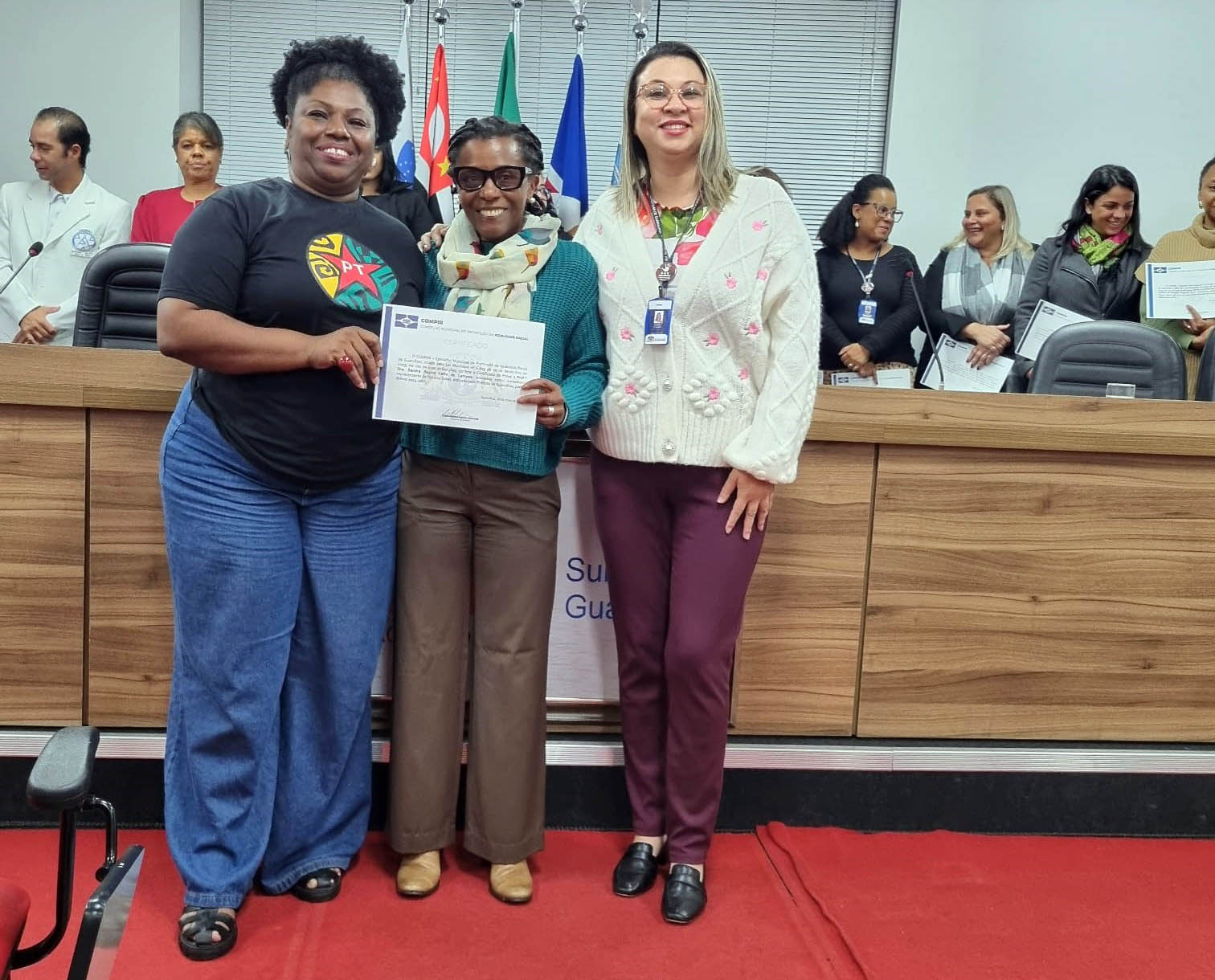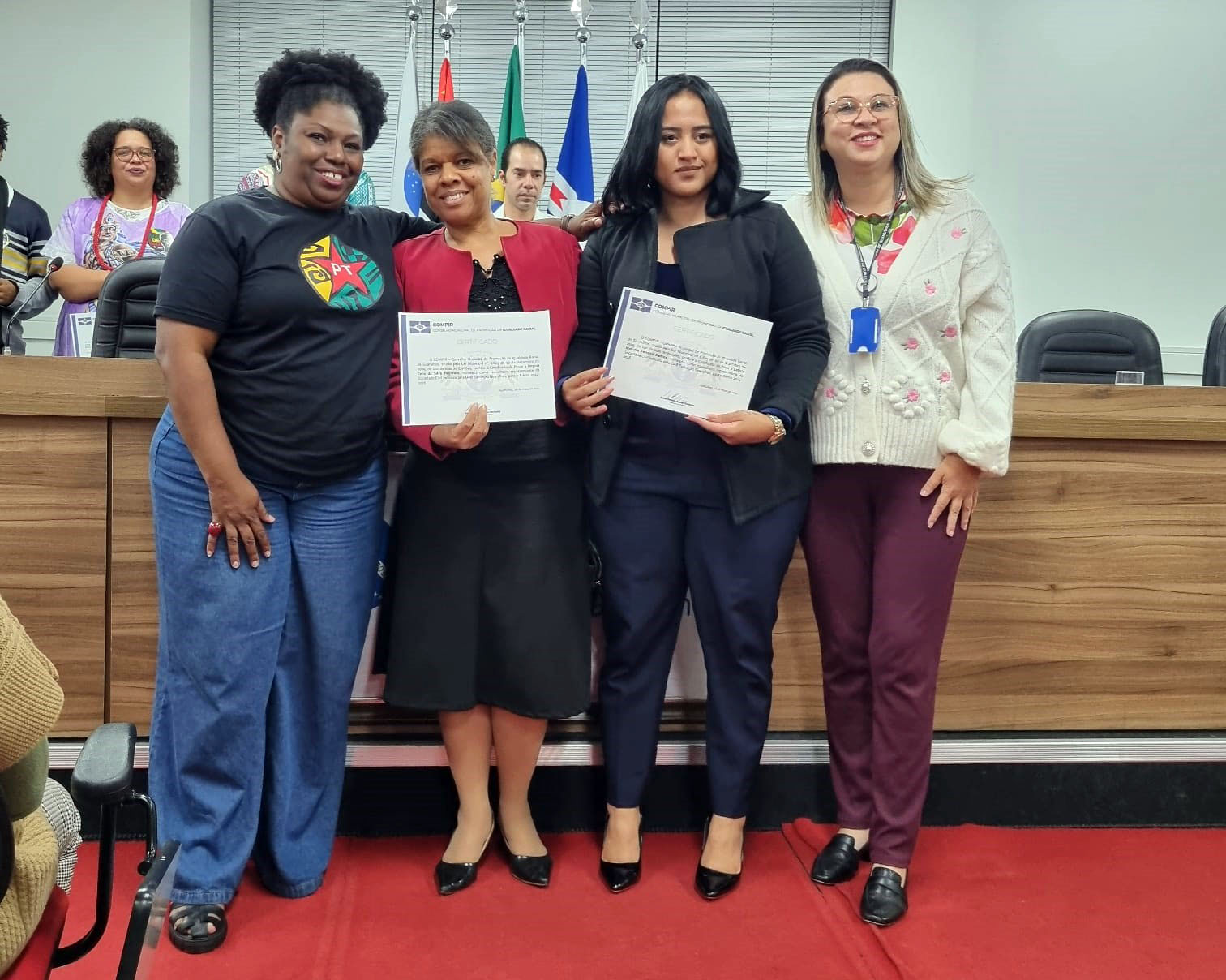 A posse dos 33 membros do Conselho Municipal de Promoção da Igualdade Racial (Compir) para o biênio 2024/2026 ocorreu na última terça-feira (28) no auditório da OAB Guarulhos, no Centro. O evento contou com a participação da subsecretária da Igualdade Racial, Andréia de Andrade, do subsecretário da Juventude, Leandro Soares, da presidente do Compir gestão 2022-2024, Luiza Owhoka, e da vice-diretora acadêmica do campus Guarulhos da Unifesp, Sandra Santos, que proferiu uma palestra sobre o panorama e os desafios dos conselhos de direito e as políticas públicas de igualdade racial.