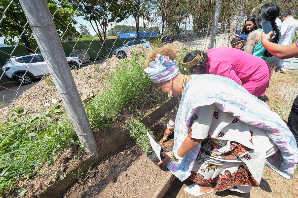 Um público de aproximadamente 40 pessoas, entre lideranças indígenas de várias etnias, representantes de religiões de matriz africana e da sociedade civil, acompanhou nesta quinta-feira (27) a inauguração do Espaço de Cultivo e Saberes Ancestrais, instalado na Casa Municipal de Agricultura Urbana e Familiar (avenida Birinepe, 99), no Jardim Cumbica.