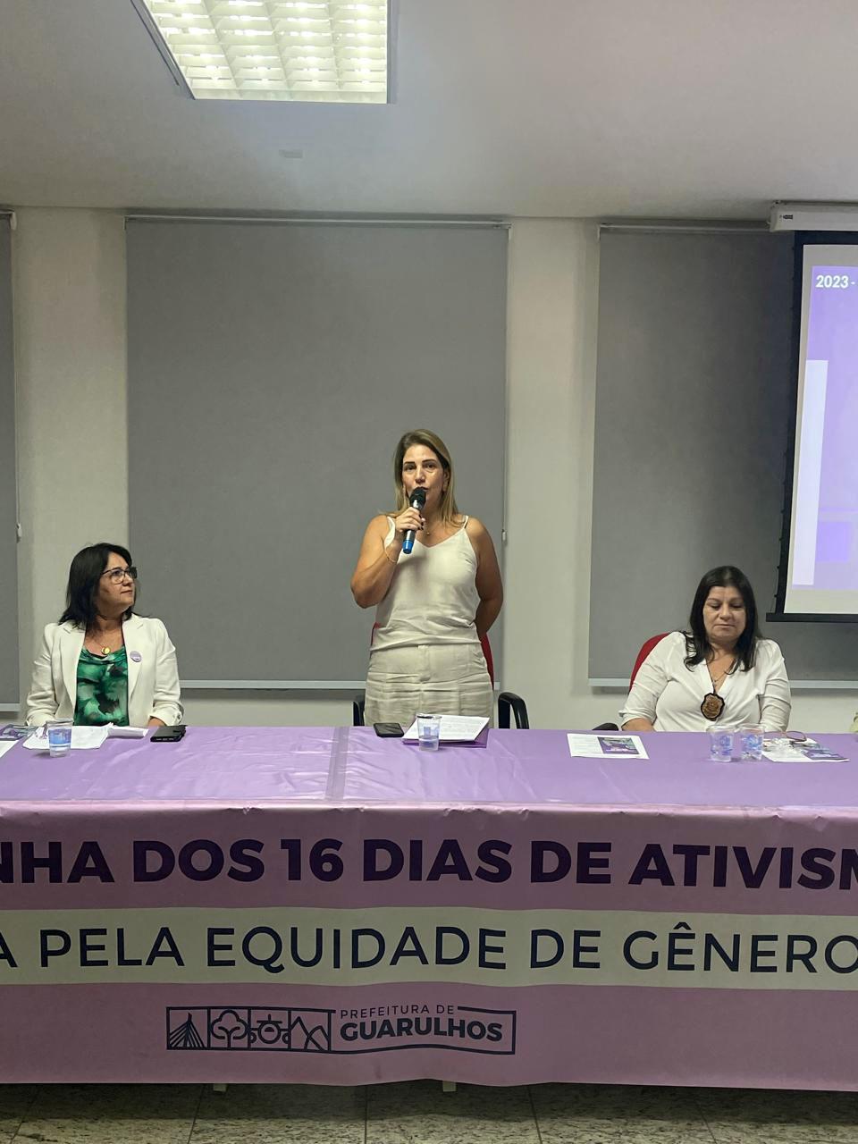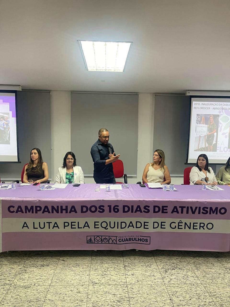 Mais de cem pessoas participaram nesta terça-feira (19) do lançamento oficial da campanha “16 + 5 Dias de Ativismo pelo Fim da Violência contra as Mulheres”, no auditório da Secretaria de Educação, Macedo. Com o tema “O Cenário Guarulhense e as Expectativas para o Futuro no Combate à Violência Contra a Mulher”, o evento contou com a participação do prefeito em exercício, Professor Jesus, e da subsecretária de Políticas para as Mulheres, Verinha Souza, entre outras autoridades.