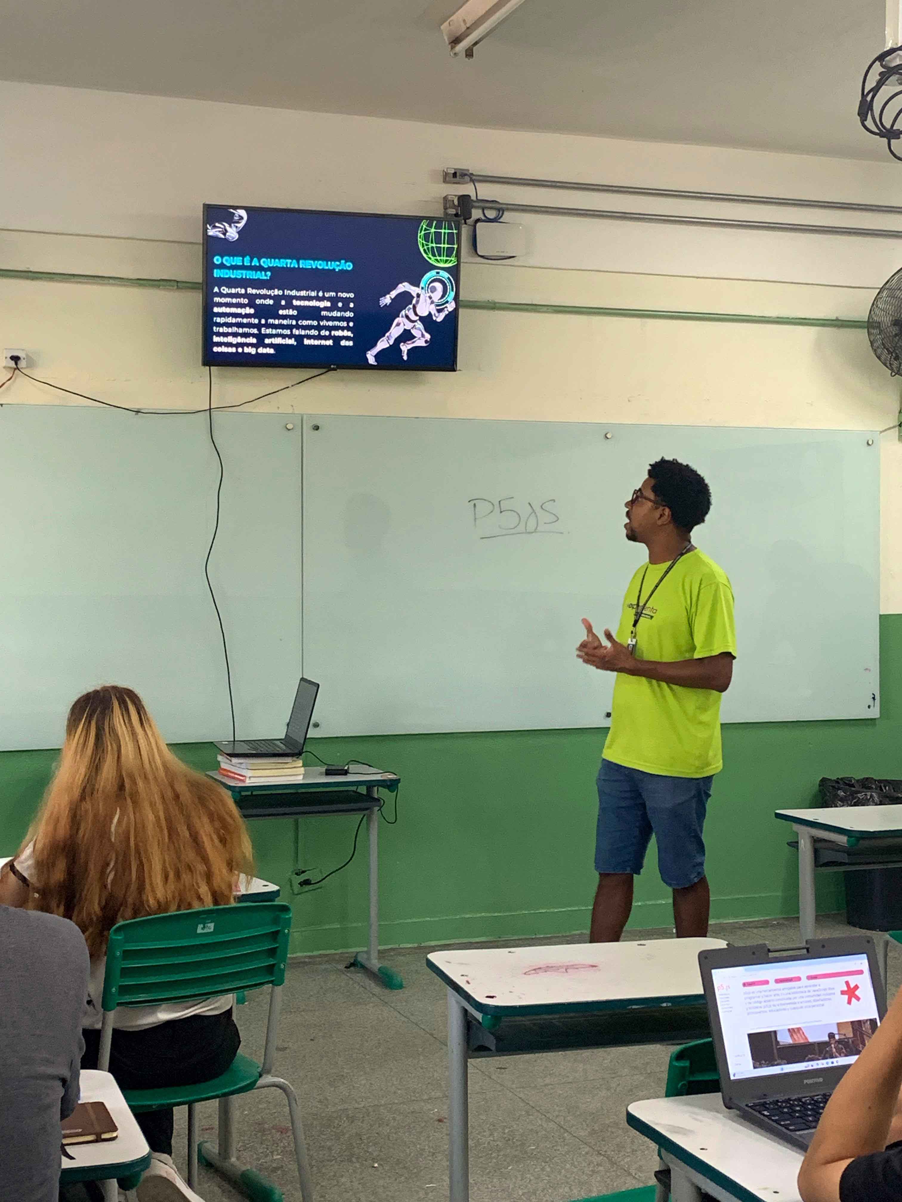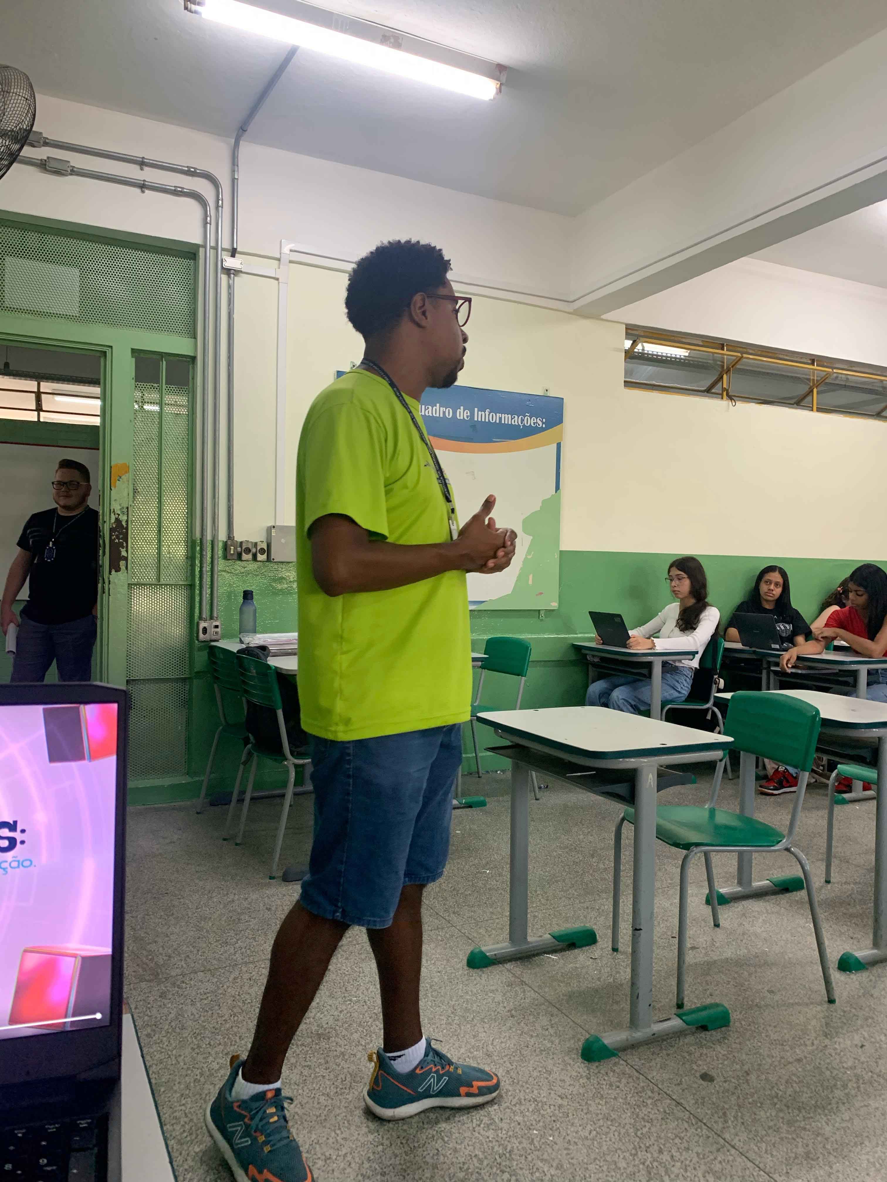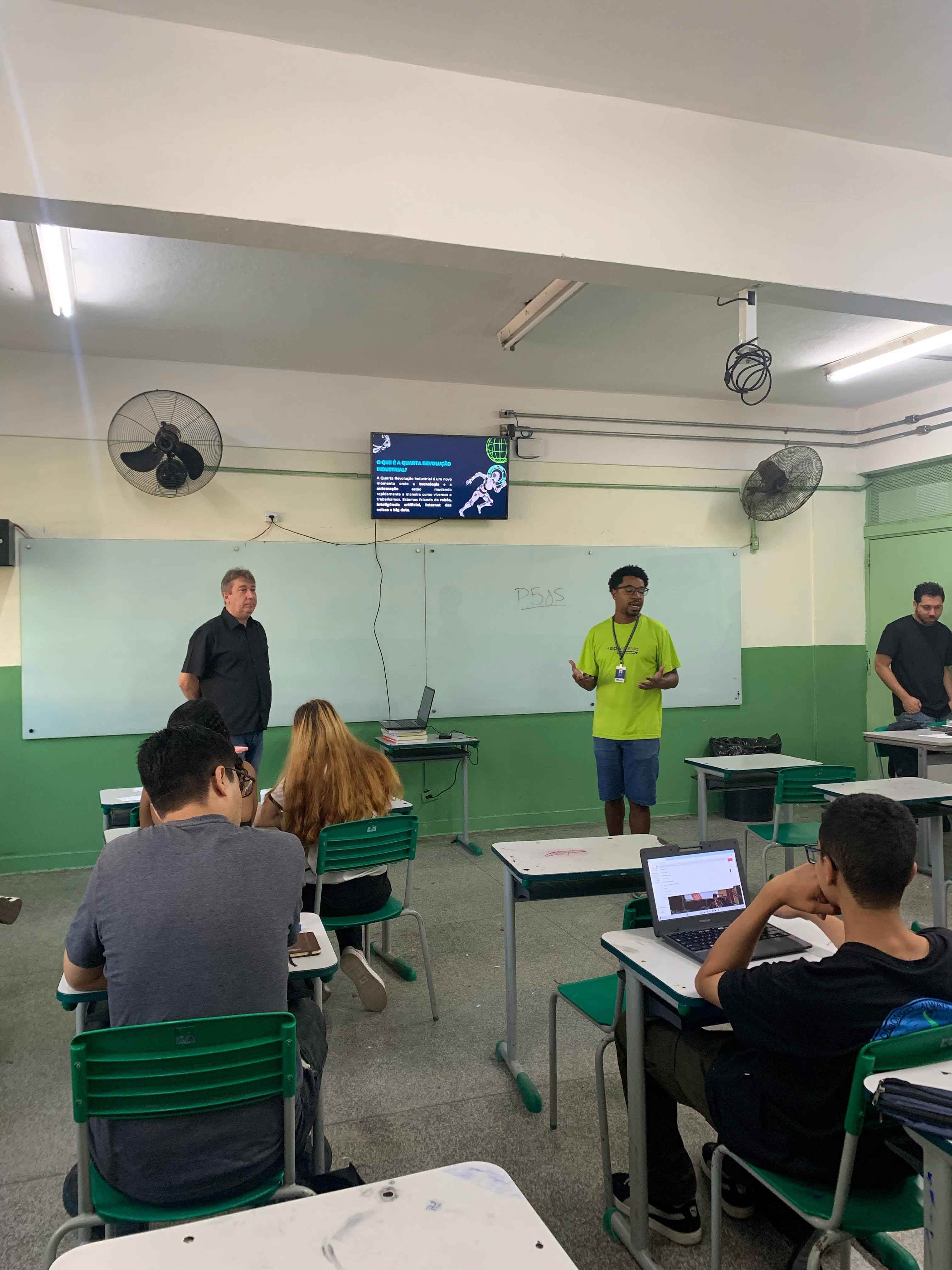 Nesta quinta-feira (27) a Secretaria de Desenvolvimento Científico, Econômico, Tecnológico e de Inovação de Guarulhos participou da ação Juventude na Escola na EE Lydia Kitz Moreira, no Jardim Santa Clara, com a oficina “Desvendando códigos: criando com inteligência artificial e programação”, que destacou a importância da juventude olhar para o futuro do emprego e se qualificar profissionalmente em áreas consolidadas ou promissoras de tecnologia como robótica, programação e inteligência artificial.