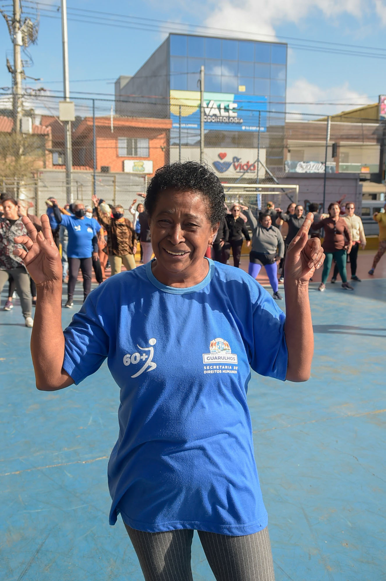 Aos 66 anos, a dona de casa Maria da Gloria Pereira de Lima é uma das participantes do projeto. “Não paro de fazer exercícios. É a única coisa que me diverte. Sou pré-diabética, tenho pressão alta e o médico falou pra fazer atividade física. Parei na pandemia e quase morri de ficar afastada”, contou a moradora do Jardim Ponte Alta, que é casada, mãe de um casal, tem seis netos e dois bisnetos.