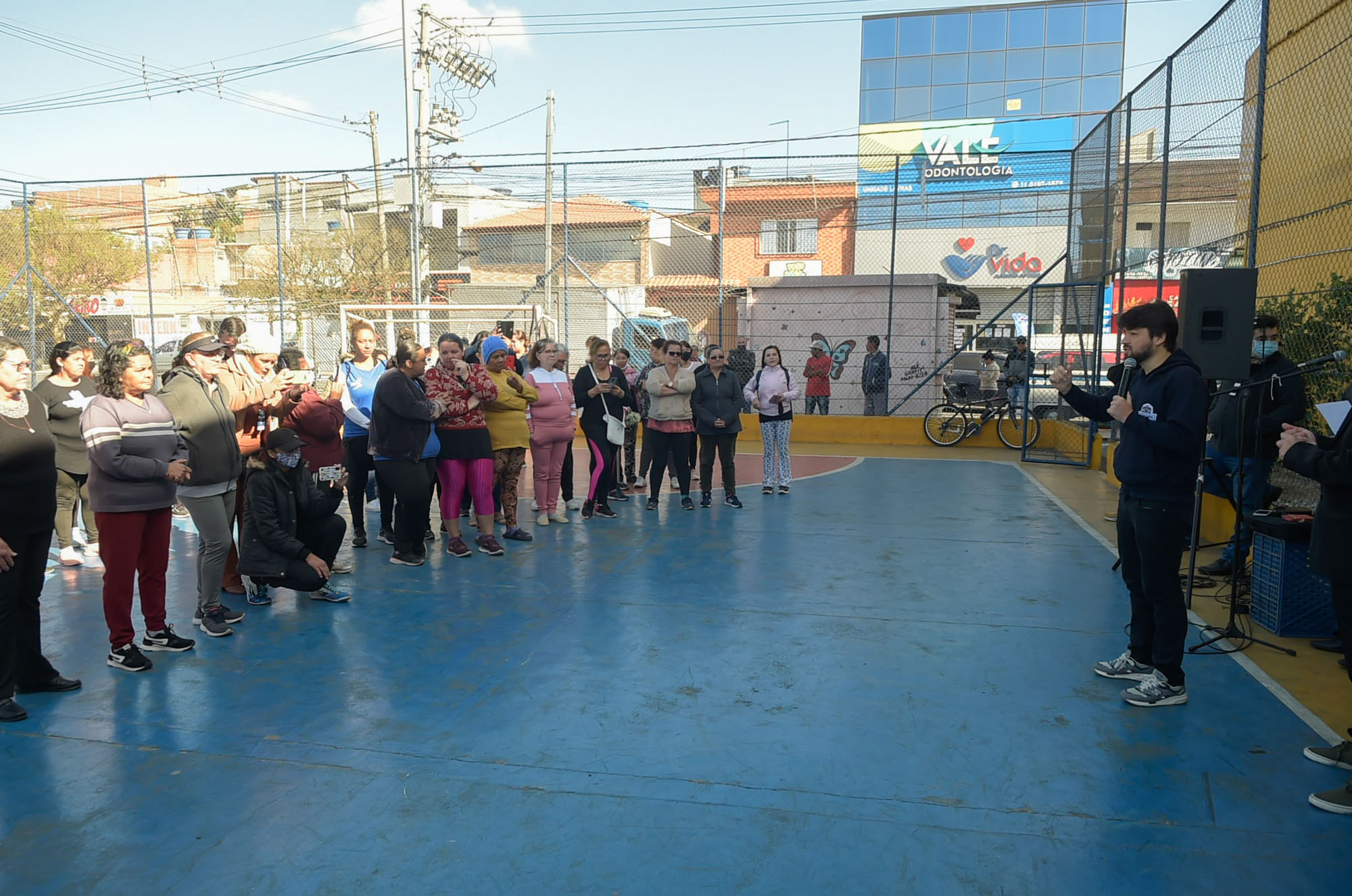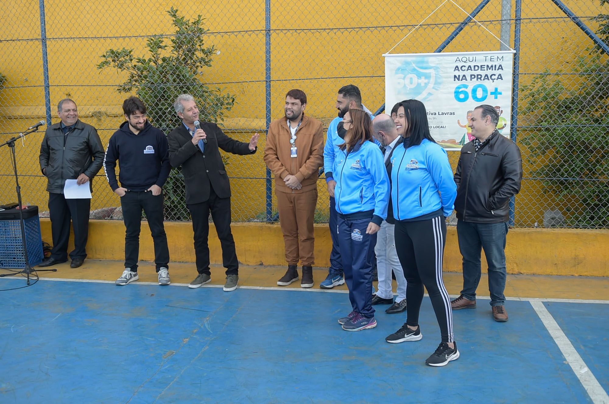 O 20º polo Academia na Praça 60+, localizado na quadra poliesportiva da avenida José Brumatti, altura do nº 3.350 (ao lado do Supermercado Fonte Nova), no Lavras, foi oficialmente entregue nesta quarta-feira (31) pelo prefeito de Guarulhos, Guti. A inauguração contou com a presença do subsecretário de Políticas para o Idoso (SPI), Walid Shuqair, do secretário-adjunto de Direitos Humanos, Martinho Risso, do secretário de Desenvolvimento e Assistência Social, Fábio Cavalcante, de vereadores e lideranças comunitárias.