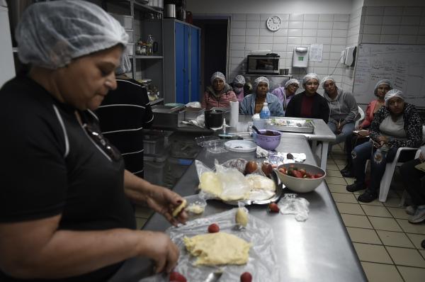 Aos 61 anos, Zilma Dias de Oliveira da Silva, atuava como confeiteira até adquirir baixa visão por causa de diabetes e glaucoma. Ela frequenta as aulas do projeto Práticas Educativas para Inclusão Social (Peis) há seis anos. "A oficina é muito instrutiva. Estou gostando e me divertindo", afirmou a moradora da Vila Rio de Janeiro, que auxiliou a confeiteira Rosemeire durante a aula.