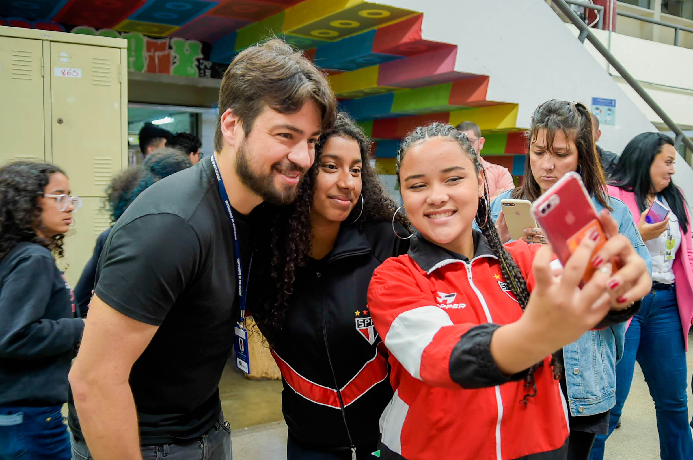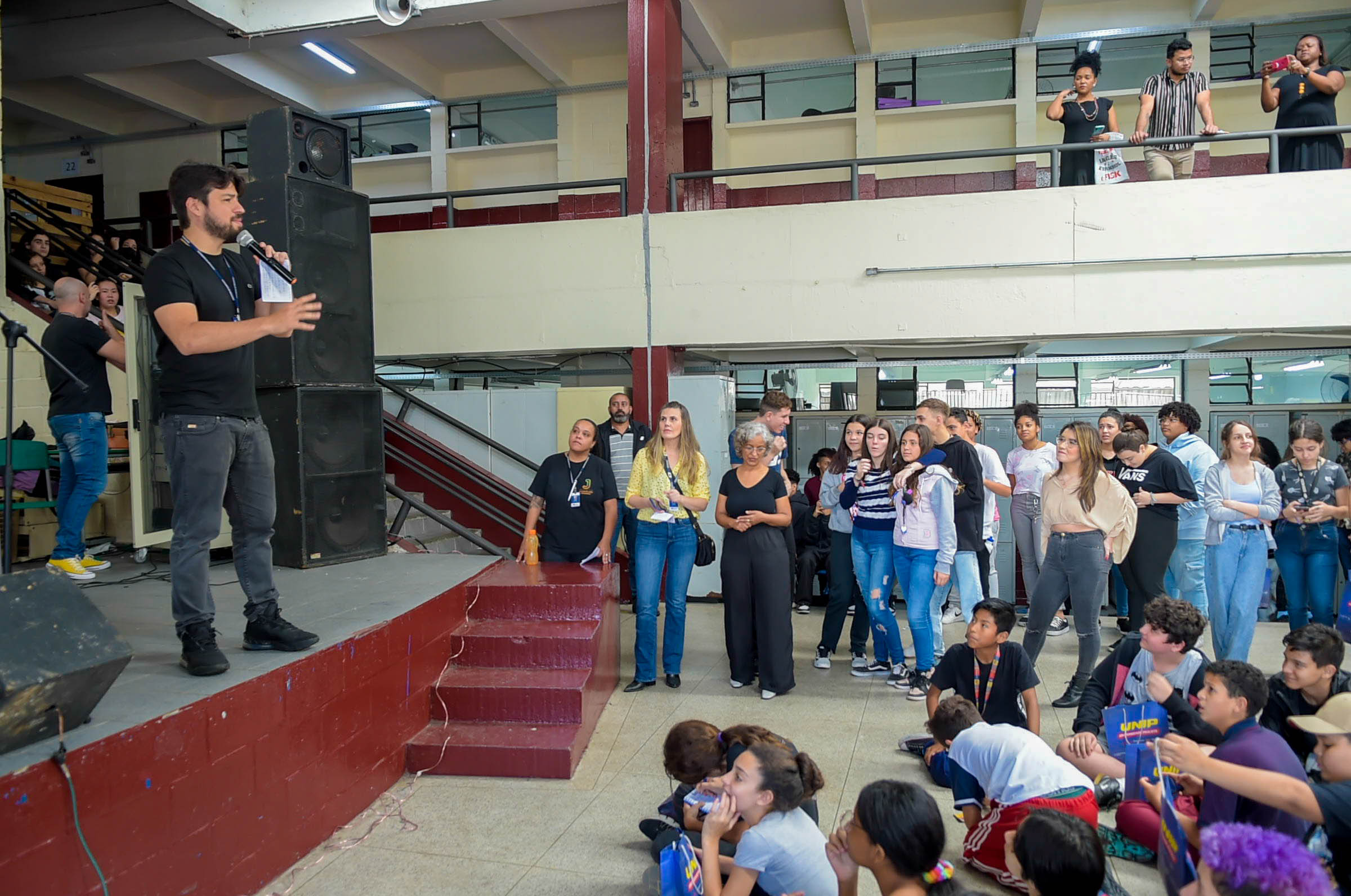 Mais de cinco mil alunos do ensino médio de escolas públicas do município participaram da 1ª Feira do Estudante Itinerante ”Inspiração para Continuar” promovida pela Prefeitura de Guarulhos em cinco bairros diferentes ao longo da semana. Nesta sexta-feira (21), o evento ocorreu na EE Dom Paulo Rolim Loureiro, na Ponte Grande, que fechou a programação iniciada na última segunda-feira (17) e contou com a presença do prefeito Guti acompanhado do subsecretário da Juventude, Cesar Sousa.