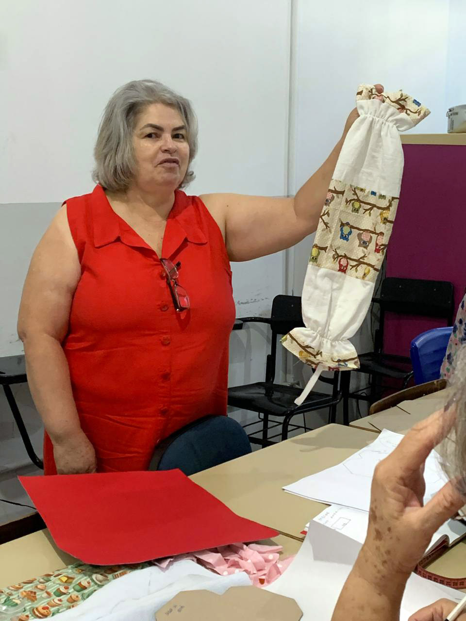 Aos 60 anos, Adélia Alves, moradora do Jardim Santa Lídia, se inscreveu para as aulas. Ela tem experiência com pintura em pano de prato e gosta de costurar, já que aprendeu com a mãe quando era menina. Ela revelou que pretende aprender bem esse tipo de artesanato e oferecer a pessoas conhecidas. Desta forma, espera ter seu próprio dinheiro, uma vez que está desempregada há algum tempo.
