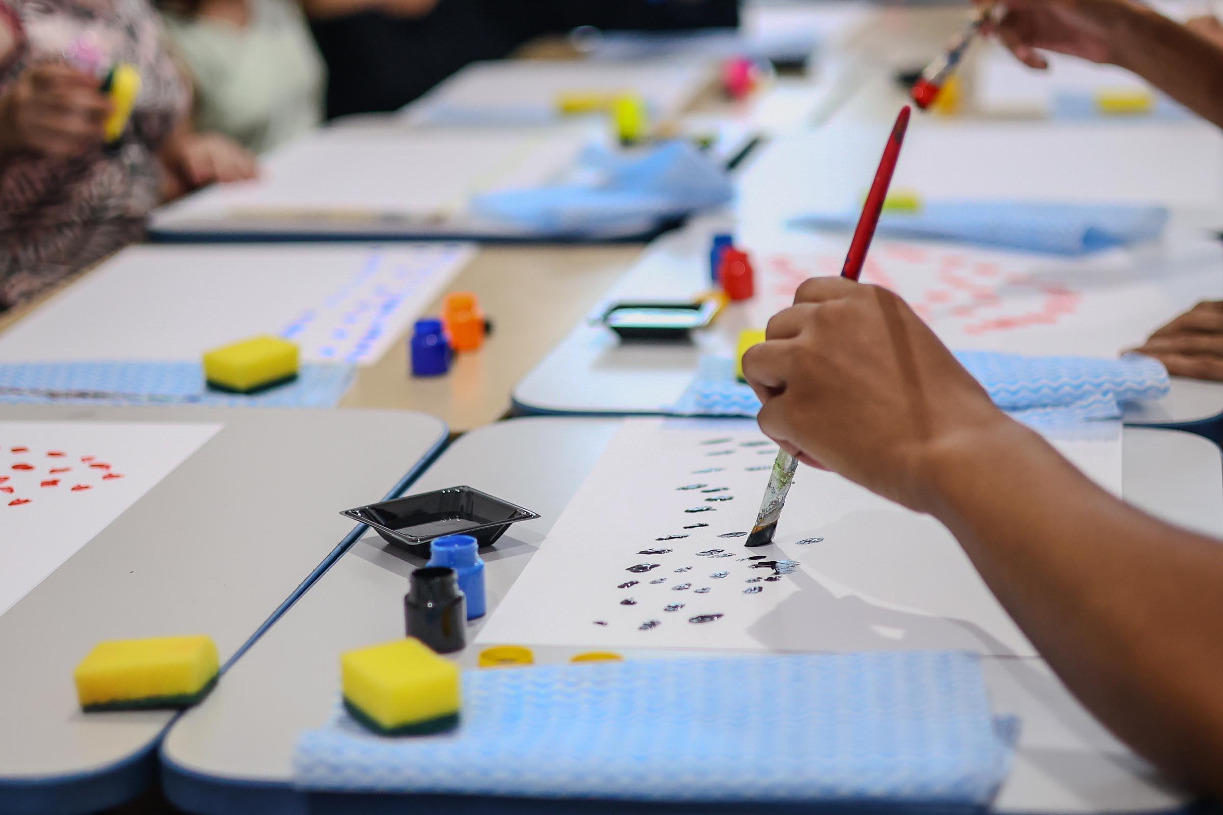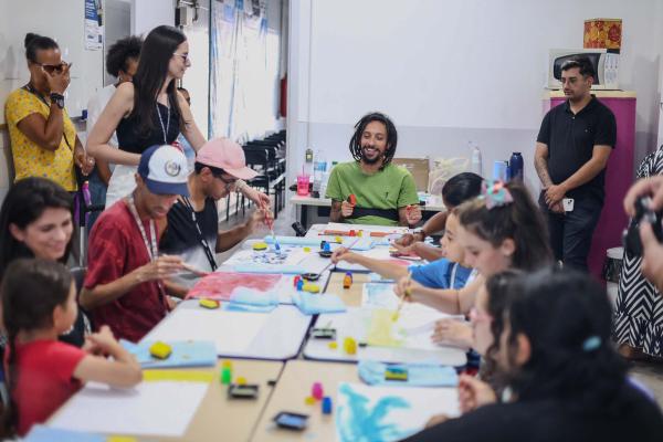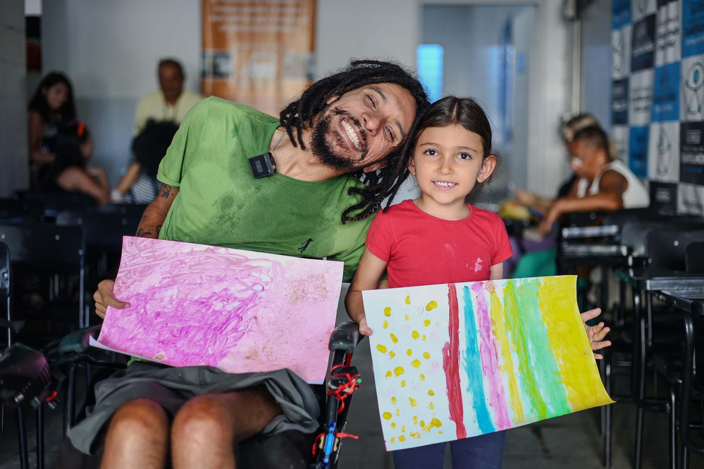 Conduzidos pelo artista plástico Ricardo Almeida, que usa cadeira de rodas, os participantes tiveram a oportunidade de soltar a imaginação e expressar emoções por meio da arte, além de explorar cores e texturas com o uso de pincéis, esponjas e da própria mão.