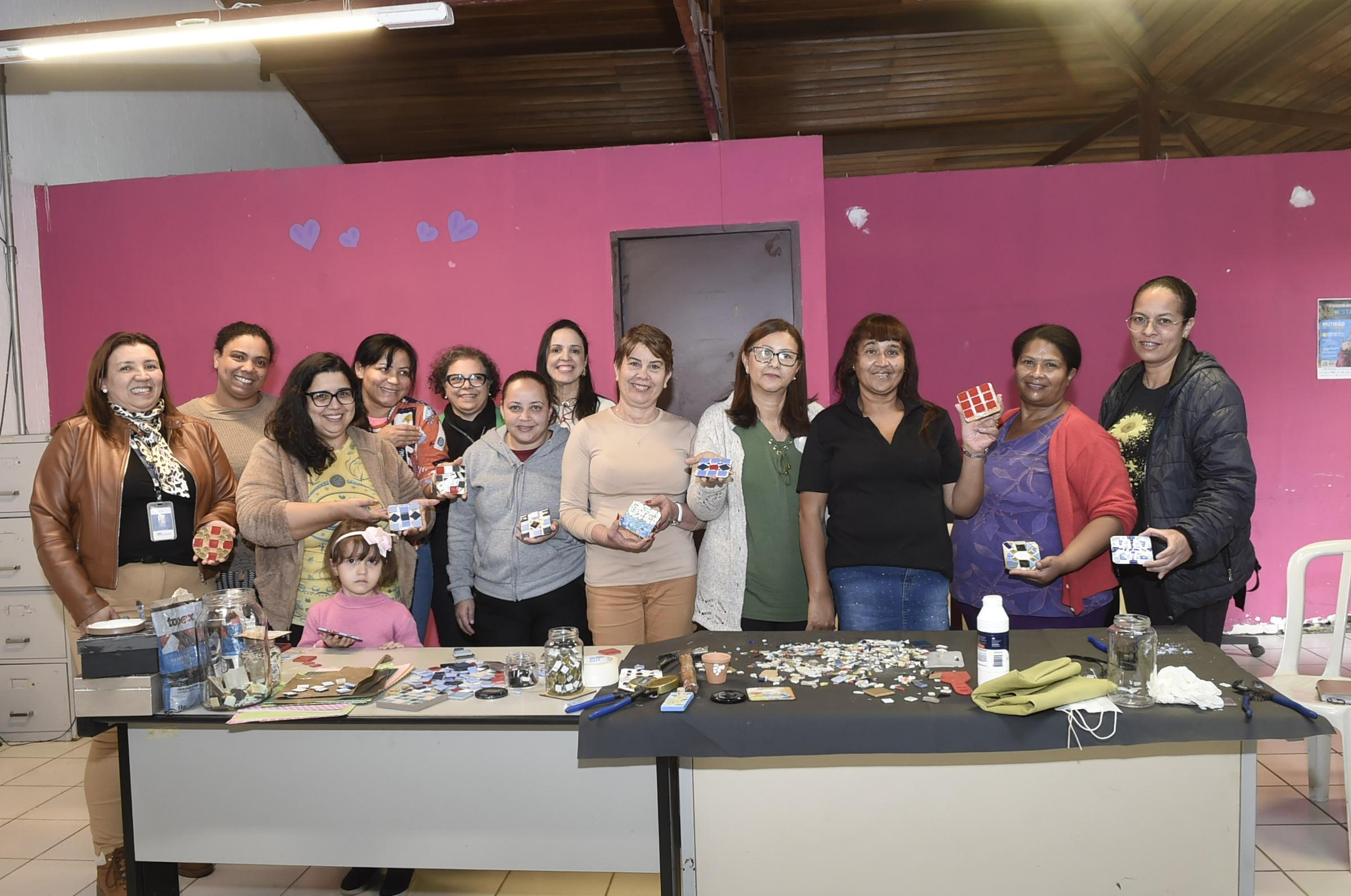 A Prefeitura de Guarulhos iniciou na tarde de segunda-feira (4) a primeira oficina gratuita de mosaico para uma turma de assistidas pela Casa da Mulher Clara Maria Recreio São Jorge. A ação da Subsecretaria de Políticas para as Mulheres prosseguiu nesta terça-feira (5) na unidade Bom Clima. Ao longo da semana, será realizada em outros três locais (Vila Galvão, Haroldo Veloso e Pimentas).