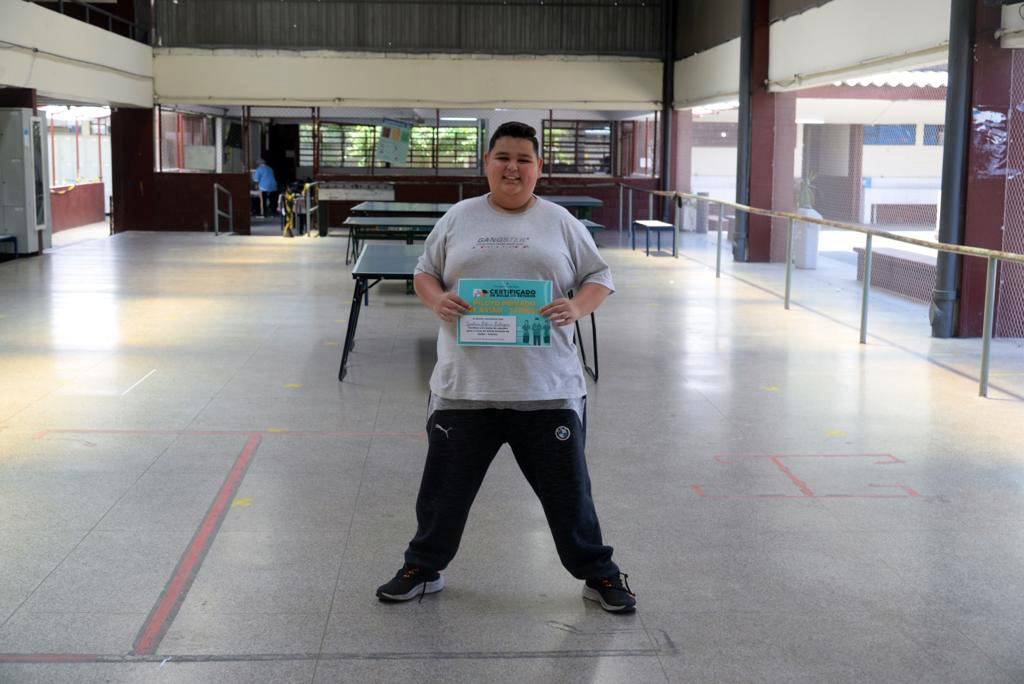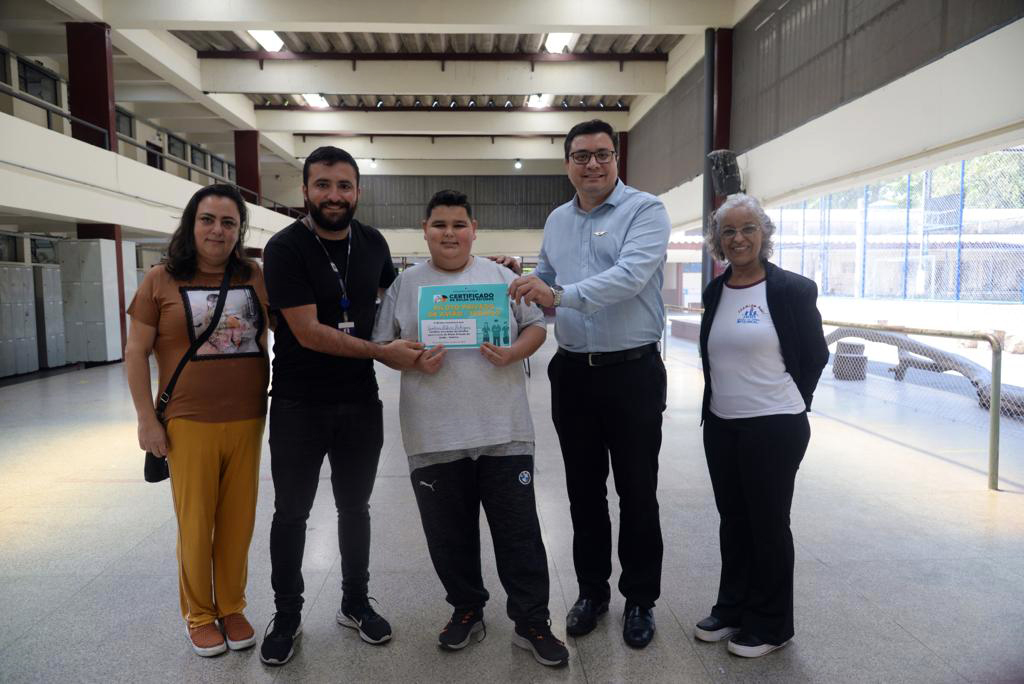 A entrega do certificado da bolsa de estudo foi feita nesta quarta-feira (26) pelo subsecretário da Juventude, Cesar Sousa, acompanhado do fundador da escola Companhia das Asas, Marcos Paulo de Souza, da diretora da escola estadual, Ana Maria Martins Valim, e da mãe do aluno Cíntia Rodrigues.