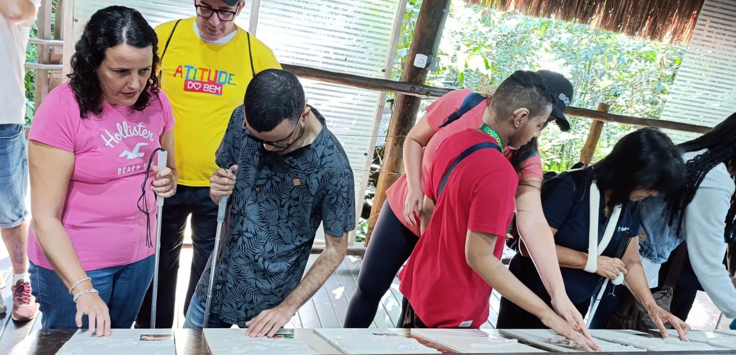 Mediada por agentes de educação ambiental do Sesc Guarulhos, a atividade contou com diversos recursos de acessibilidade, como mapas e maquetes táteis, guia de balizamento, placas com inscrições em Braille, figuras em alto relevo, corrimãos em diferentes alturas, entre outros.