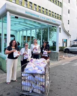 A Prefeitura de Guarulhos, por meio da Subsecretaria de Políticas para as Mulheres e do Fundo Social de Solidariedade, entregou na quarta-feira (21) 100 kits de cuidados pessoais às mães assistidas pelo Hospital e Maternidade Jesus, José e Maira, conhecida como JJM. A entrega foi feita pela subsecretaria da pasta, Vanessa de Jesus, e pela primeira-dama e presidente do Fundo Social de Solidariedade, Carol Sanches, na instituição localizada no bairro Cidade Maia.