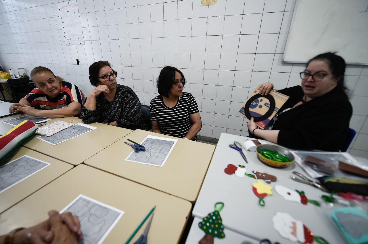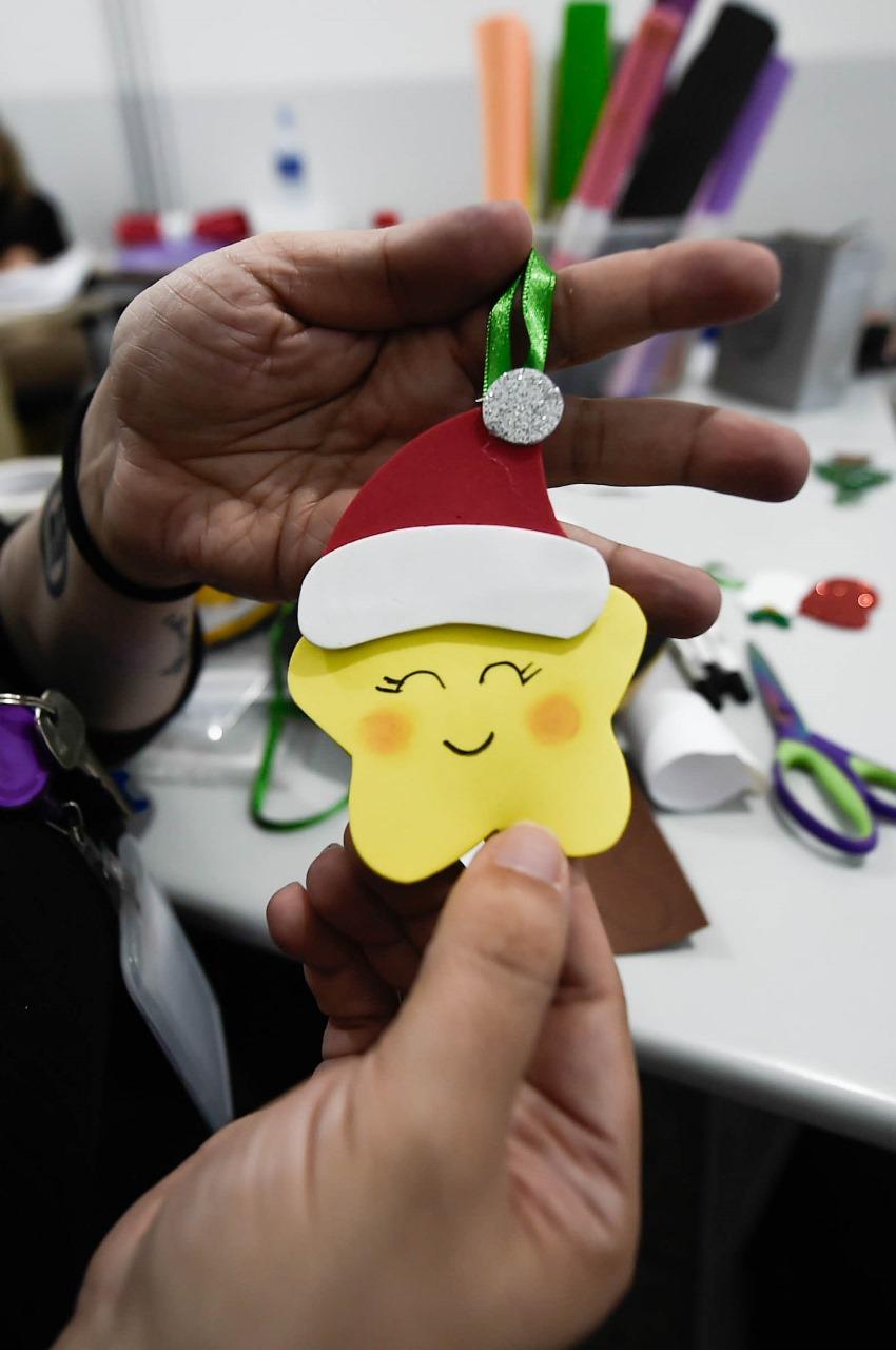 A unidade Bom Clima da Casa da Mulher Clara Maria recebeu nesta segunda-feira (10) a primeira das duas aulas da oficina de enfeites de Natal em EVA promovida pela Subsecretaria de Políticas para as Mulheres para as assistidas inscritas. O segundo encontro ocorrerá nesta terça-feira (11) e na próxima terça-feira (18) para a turma da Casa da Mulher Haroldo Veloso, prosseguindo ao longo do mês nos equipamentos da Vila Galvão, Pimentas e Recreio São Jorge, cujos endereços podem ser consultados no link https://www.guarulhos.sp.gov.br/casa-da-mulher-clara-maria