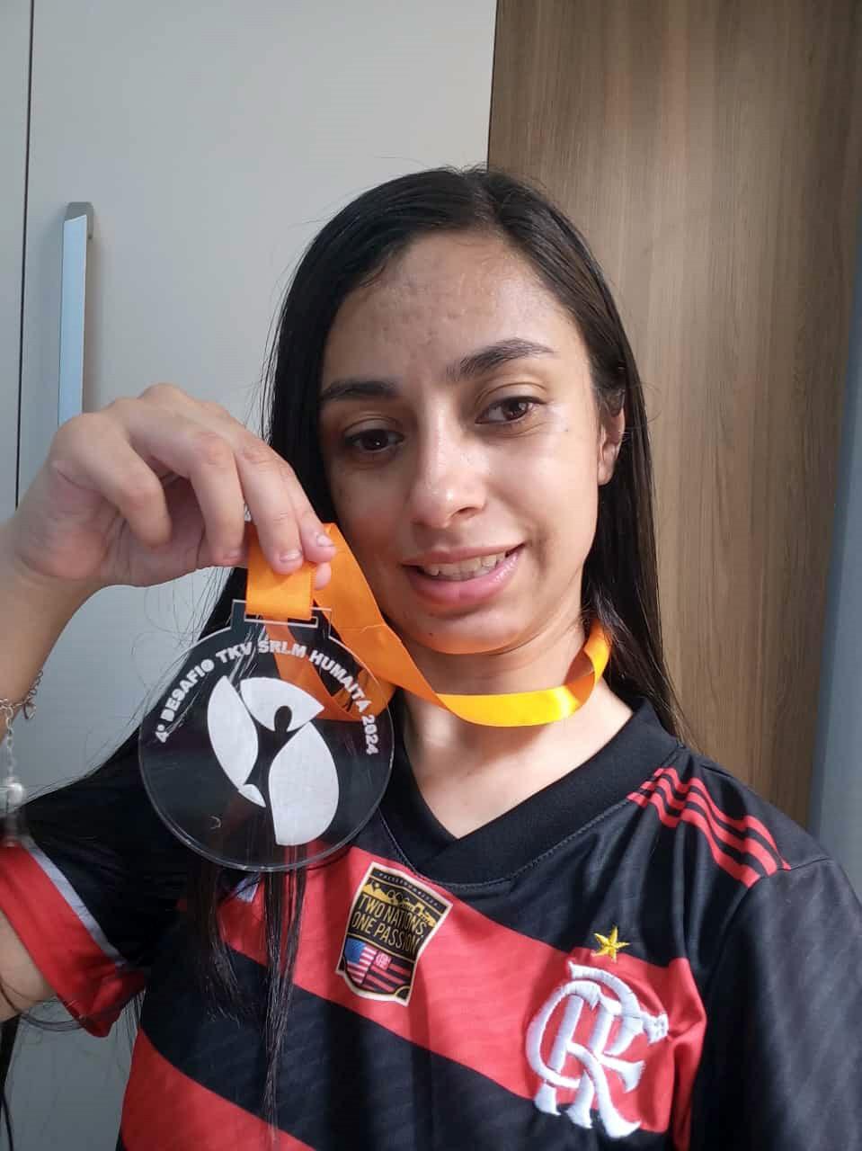 A aluna do Peis Daylaine Cardoso de Oliveira Deucher possui baixa visão e há dois meses iniciou o processo de reabilitação. “Foi uma experiência muito boa. Pude jogar com pessoas em cadeira de rodas e com idosos. É um jogo que não restringe ninguém. Ele ajuda muito na memorização e no controle da ansiedade. Quero jogar mais vezes”, revelou a moradora do Parque Mikail, que esteve pela primeira vez nessa atividade externa e recebeu uma medalha de participação.