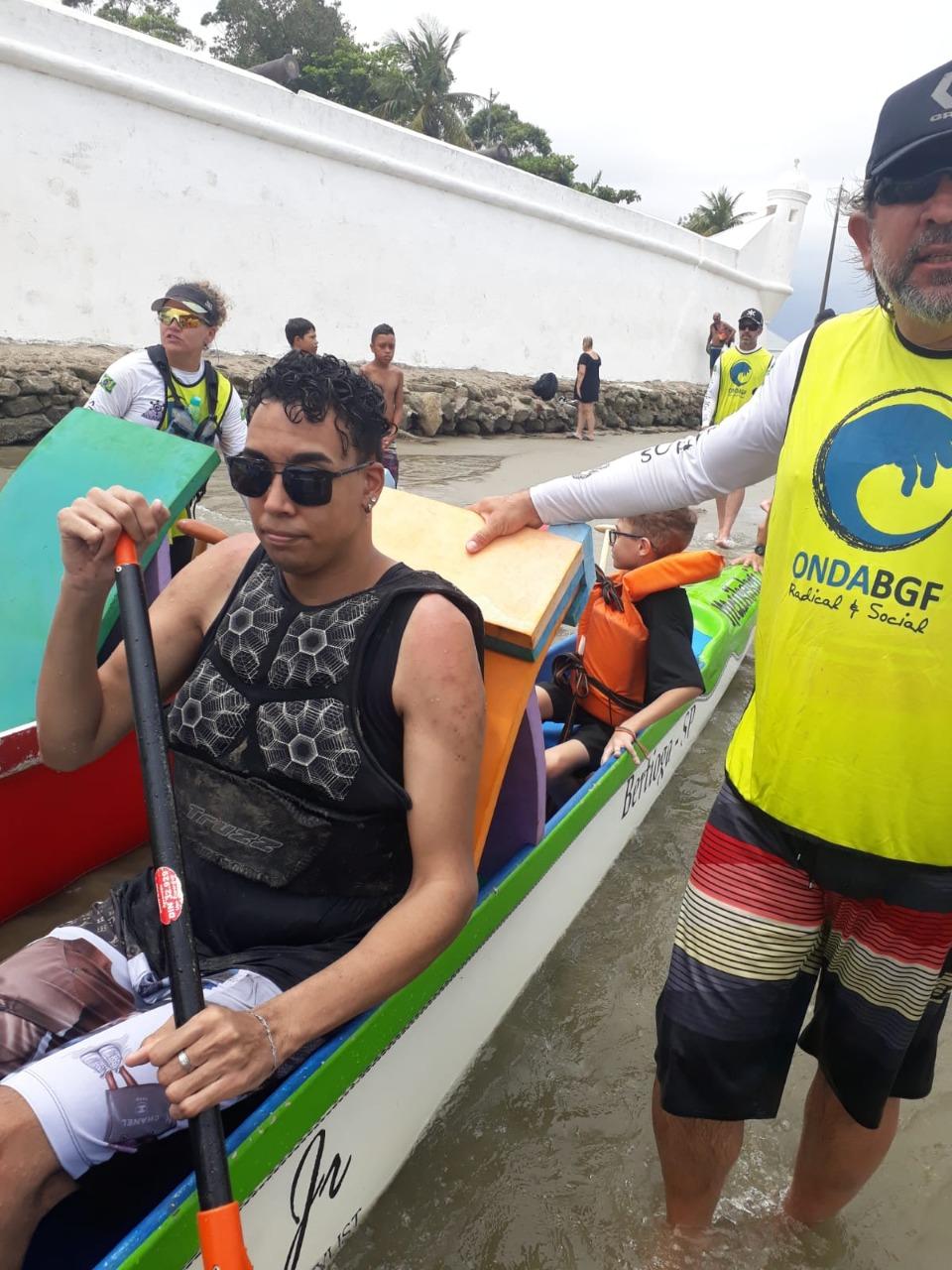 João Vitor Santos Rocha, de 22 anos, tem cegueira total em razão da síndrome de Marfan, uma doença genética. Sábado foi a primeira vez que ele visitou a praia. “Amei a experiência de sentir a brisa, a areia macia. Fiz remo e surf. Foi maravilhoso. Não sabia que a praia era tão gostosa”, relatou o jovem, que acrescentou rindo: “minha única reclamação é que a pessoa que temperou a água do mar exagerou no sal”.