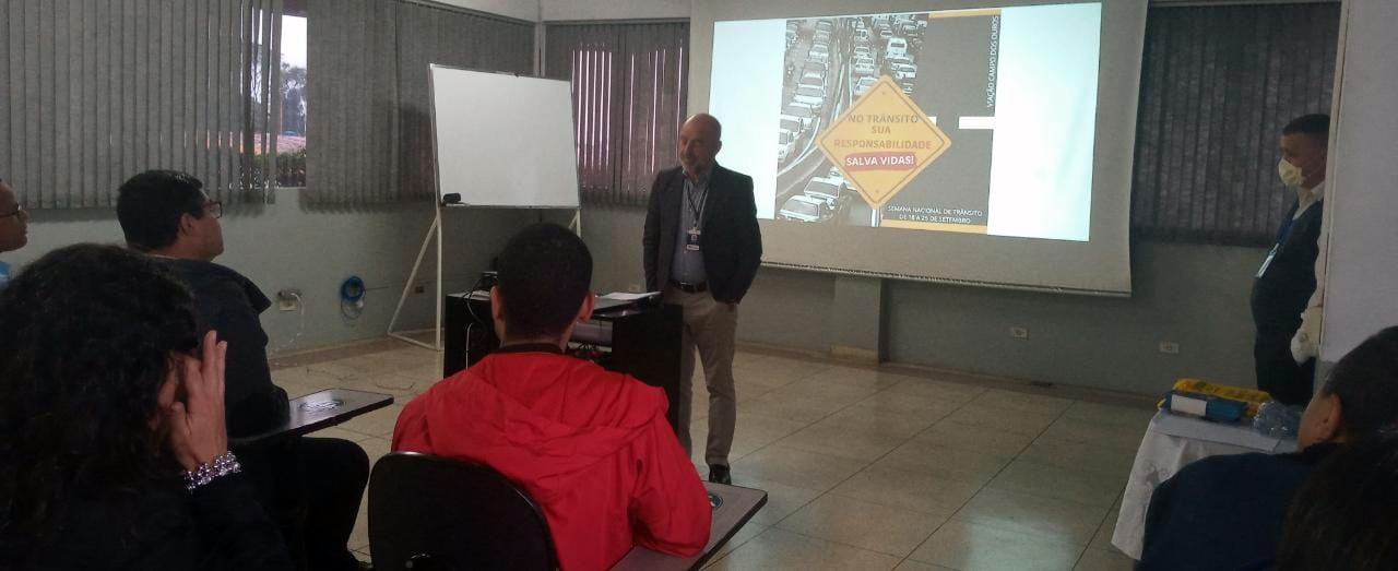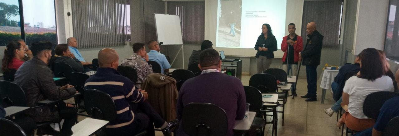 Nesta quarta-feira (21) a Prefeitura de Guarulhos promoveu uma formação para motoristas de ônibus da Viação Campo dos Ouros sobre embarque e desembarque seguro de pessoas com deficiência, na sede da empresa. A ação, coordenada pela Subsecretaria de Acessibilidade e Inclusão, vinculada à Secretaria de Direitos Humanos, marca o Dia Nacional de Luta das Pessoas com Deficiência e integra a Semana Nacional do Trânsito (de 18 a 25 de setembro).