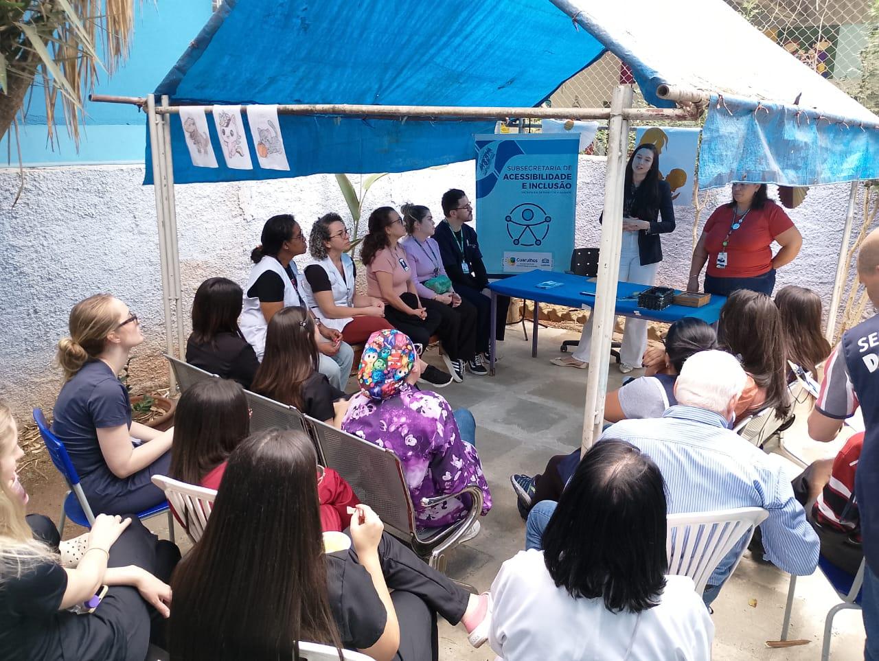 A equipe da Subsecretaria de Acessibilidade e Inclusão promoveu nesta quarta-feira (20) palestras sobre inclusão e acolhimento de pessoas com deficiência (PCDs) e capacitismo nos períodos da manhã e da tarde para duas turmas de servidores da UBS Flor da Montanha, no Jardim Flor da Montanha.