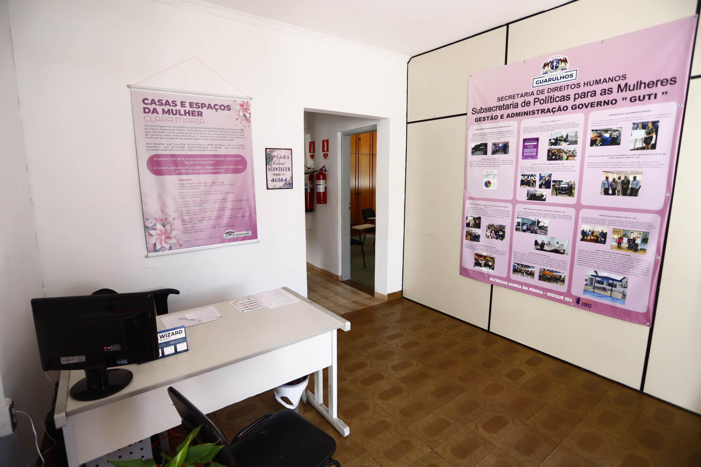 Destaque também para as seis unidades das Casas e Espaço da Mulher Clara Maria (Jardim Bom Clima, Pimentas, Jardim Vila Galvão, Conjunto Residencial Haroldo Veloso, Recreio São Jorge e Jardim Ponte Alta), onde são desenvolvidas diversas atividades para fomentar o empreendedorismo feminino com foco na autonomia financeira, na geração de renda e na promoção da autoestima feminina, além de orientar, esclarecer e informar a população sobre relacionamento abusivo, violência doméstica, entre outros.