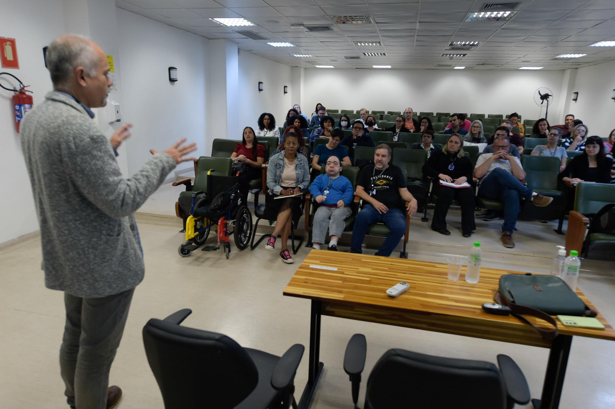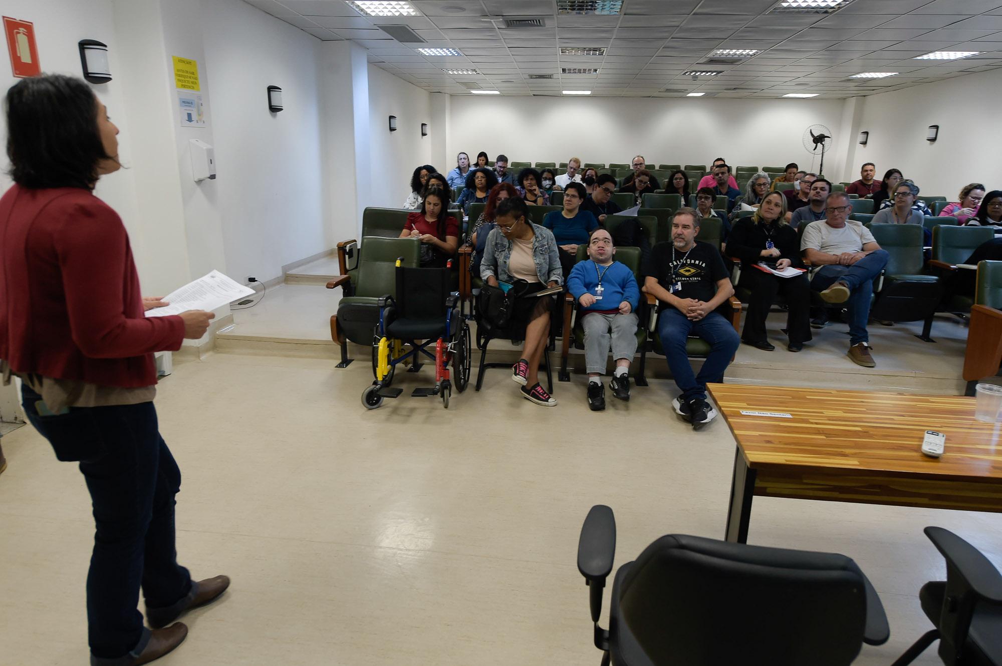 Um público de 65 servidores municipais participou nesta terça-feira (5) de uma palestra sobre avaliação de políticas públicas, ministrada pela cientista social e docente da Escola de Artes, Ciências e Humanidades da USP, Renata Bichir, no auditório da Unifesp Guarulhos. A aula inaugural abriu o da 5ª edição do Ciclo de Palestras: Políticas Públicas e Direitos Humanos, com o tema produção de dados e indicadores em direitos humanos, promovida pela Prefeitura em parceria com a Universidade Federal de São Paulo.