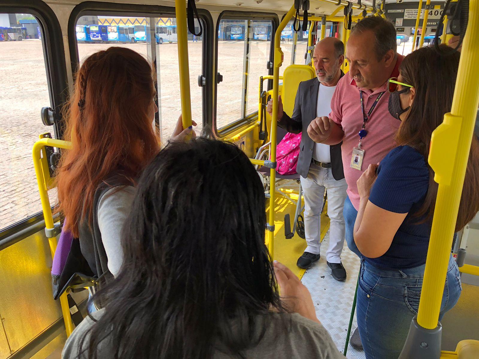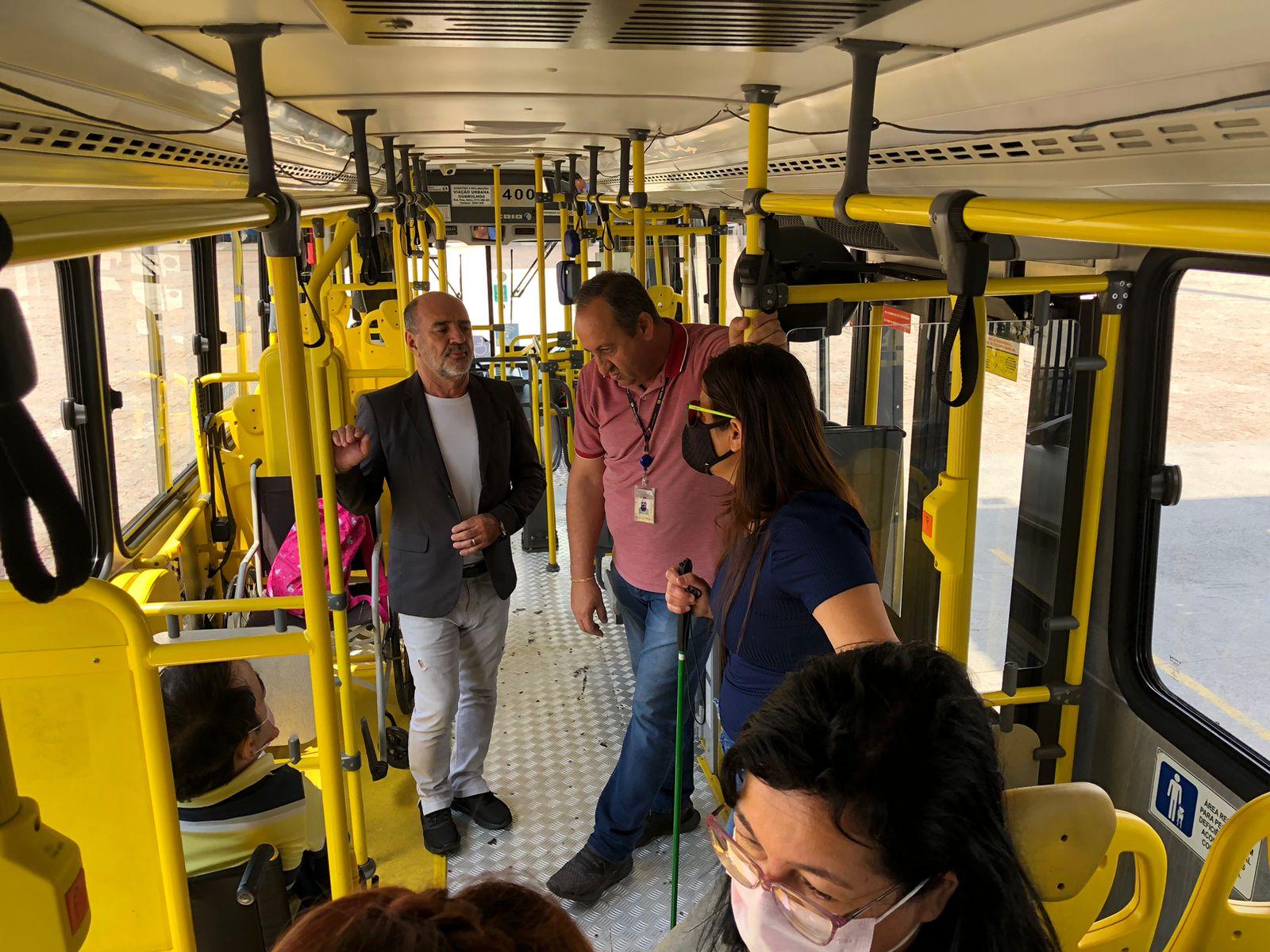 A ação envolveu duas alunas de baixa visão, que utilizam o transporte público, e o servidor Luis Eduardo Garcia Próspero, também deficiente visual, o qual acompanhou a atividade na sua cadeira de rodas e conheceu o ônibus com dois lugares para cadeirantes. Eles aprenderam sobre os componentes da parte interna do ônibus, como assentos reservados, campainha, local para cão-guia, validador, catraca, barras onduladas de indicação de assento reservado, plataforma elevatória, saídas de emergência, entre outros.