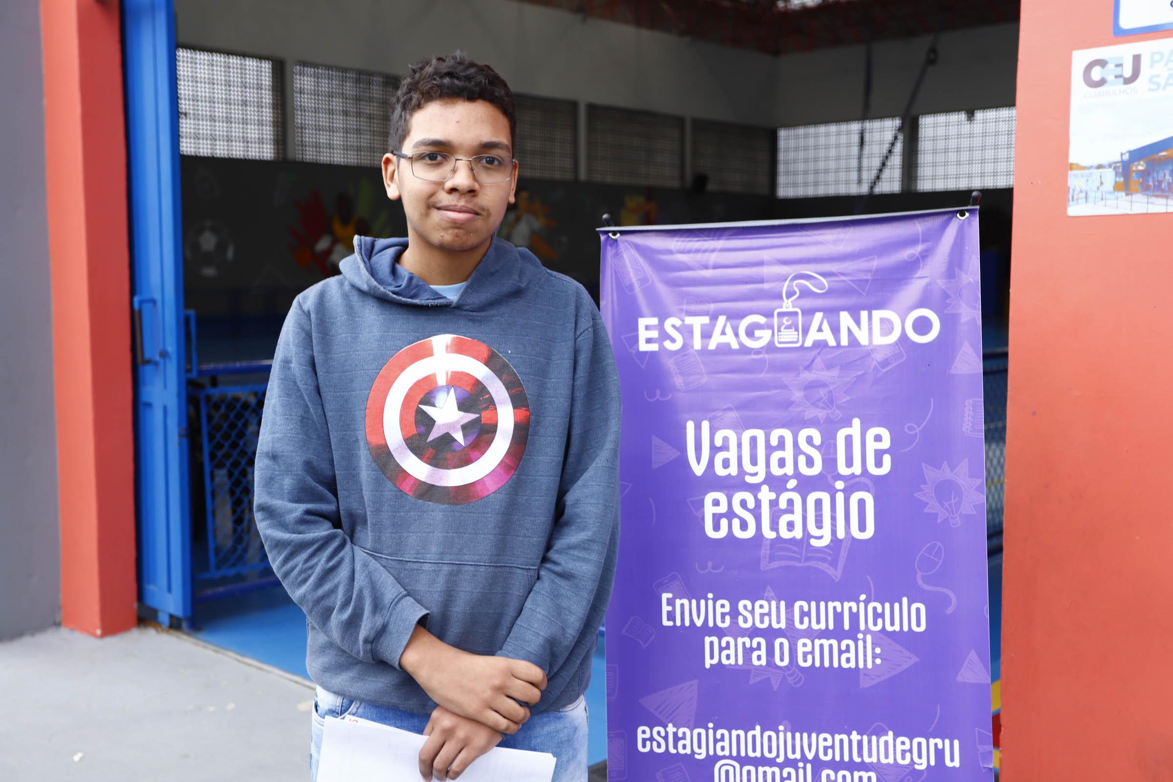 Por meio de um cartaz fixado no Terminal de Ônibus Pimentas, o aluno do 2º ano do ensino médio Felipe Santos Souza Barbosa, de 17 anos, soube do Estagiando. “Quero ter uma experiência profissional para me ajudar mais pra frente. Eu estava positivo e consegui vários encaminhamentos hoje”, disse o adolescente do Jardim Santa Paula. Ele revelou ainda que pretende prestar o Enem no próximo ano e irá juntar dinheiro para auxiliar no pagamento da faculdade de medicina veterinária.