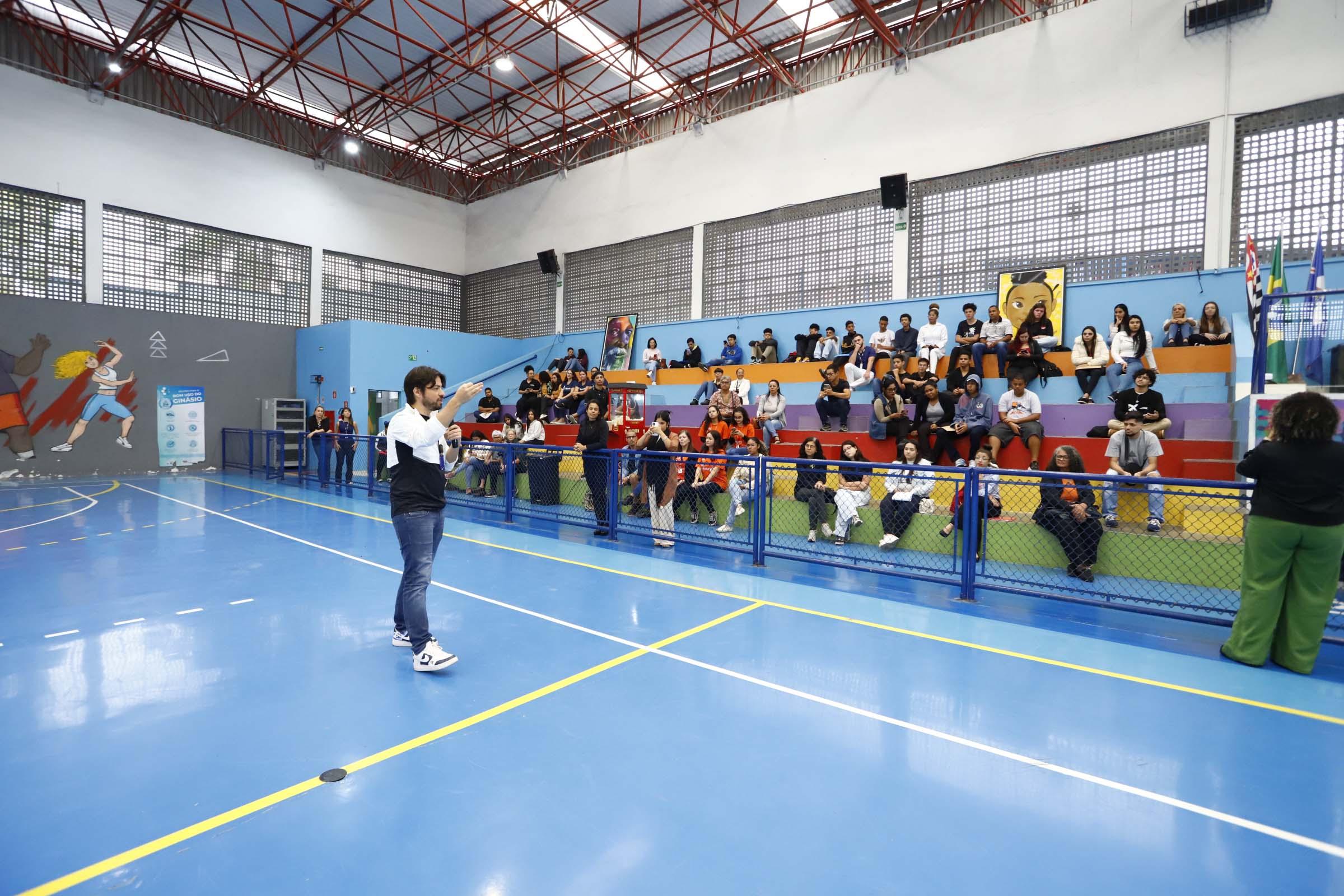Nesta terça-feira (21) a 12ª edição do projeto Estagiando, promovido pela Prefeitura de Guarulhos, mobilizou cerca de 500 jovens entre 16 e 29 anos que buscaram vagas de estágio remunerado em diversas áreas. O prefeito Guti e o subsecretário da Juventude, Leandro Soares, acompanharam a ação no CEU Parque São Miguel.