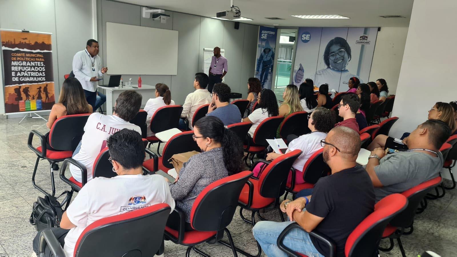 O primeiro encontro do Comitê Municipal de Políticas para Migrantes, Refugiados e Apátridas de Guarulhos reuniu nesta quinta-feira (13) um público de 40 pessoas, entre representantes de migrantes, da sociedade civil organizada e de secretarias municipais. Realizado no auditório da Secretaria de Educação, o encontro discutiu o plano de trabalho, a retomada das atividades e a apresentação dos novos membros titulares e suplentes, formados por integrantes do governo municipal e da sociedade civil.