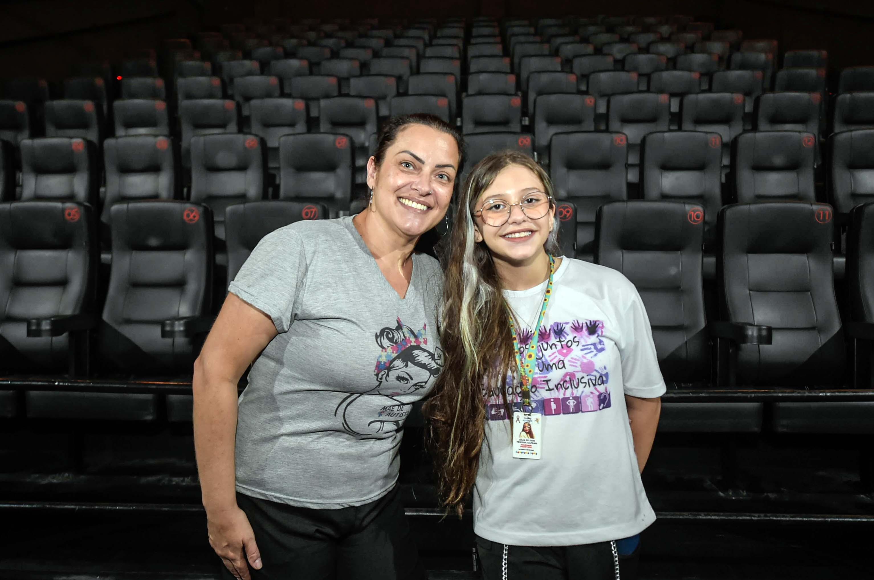 Por sua vez, Viviane Aparecida Teixeira levou a filha Júlia, de 11 anos, que foi diagnosticada com TEA e cursa o 7º ano o ensino fundamental. A adolescente sonha em atuar como policial, delegada ou advogada no futuro. “Gosto de filmes porque contam histórias. E este aqui é com o Marcos Mion da TV,” revelou a garota entusiasmada enquanto aguardava o início da sessão.