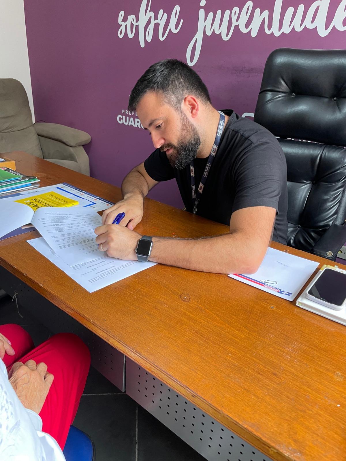 A Subsecretaria da Juventude, integrante da Secretaria de Direitos Humanos de Guarulhos celebrou na última quinta-feira (9) um termo de parceria com a Associação Brasileira de Defesa da Mulher, da Infância e da Juventude (Asbrad) para que dois jovens do projeto Gaia cumpram medida de prestação de serviço à comunidade na sede da pasta, no Gopoúva.