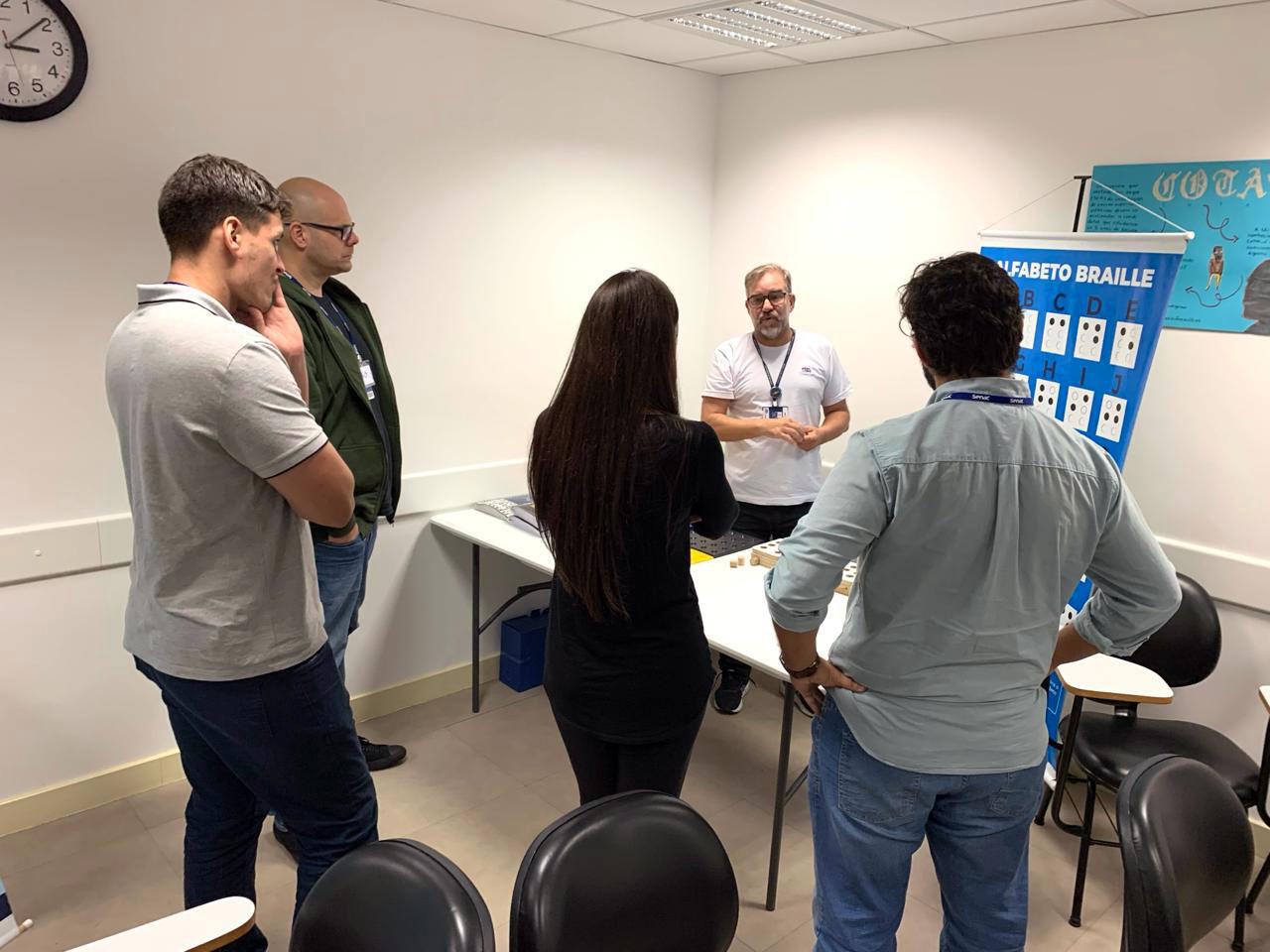 A Subsecretaria de Acessibilidade e Inclusão de Guarulhos promoveu na última sexta-feira (22) a dinâmica Dispa-se, do projeto Vivência – Conhecer para Acolher, para um grupo de 15 educadores da unidade Faccini do Senac Guarulhos, na instituição de ensino. A ação da Prefeitura busca refletir, quebrar paradigmas e mudar o comportamento como forma de combater o capacitismo e o bullying.