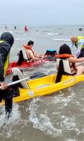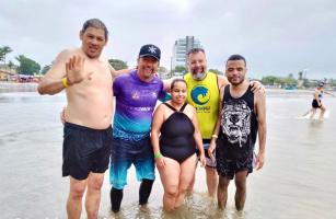 Prefeitura leva pessoas com deficiência e acompanhantes para banho de mar em Bertioga