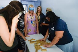 Pessoas com deficiência visual assistidas pela Prefeitura participam de trilha em Bertioga