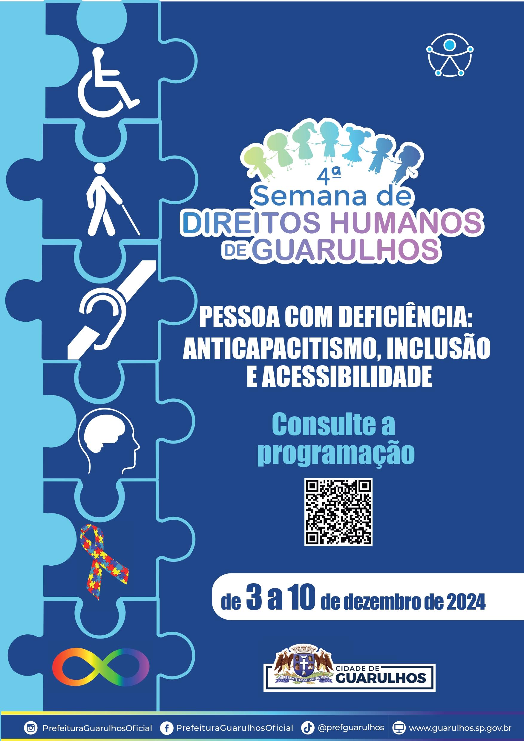 Como parte da 4ª Semana de Direitos Humanos de Guarulhos, a administração municipal promoveu nesta quarta-feira (4) a palestra “Nem toda pessoa com deficiência é igual: uma conversa sobre marcadores sociais da diferença” no auditório do Sindicato dos Bancários, no Jardim Zaira. O evento foi organizado pela Subsecretaria da Igualdade Racial em parceria com o Conselho Municipal da Promoção da Igualdade Racial (Compir) e a Unifesp.