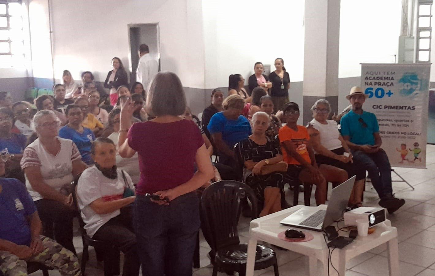 Uma plateia de cerca de 70 idosos, entre integrantes do projeto Academia na Praça 60+ e do Núcleo de Convivência para o Idoso (NCI), participou nesta quarta-feira (19) da palestra A Efetividade da Garantia de Direitos como Prevenção da Violência contra a Pessoa Idosa, ministrada pela psicóloga Zina Costa no Centro de Integração da Cidadania (CIC) Guarulhos, na região dos Pimentas.