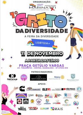 O 1º Grito da Diversidade LGBTQIAP+ de Guarulhos, que será realizado neste sábado (11) na praça Getúlio Vargas (Centro), contará com a Tenda da Diversidade, da Prefeitura de Guarulhos, e a unidade móvel do projeto Cidadania Itinerante, da Secretaria Estadual de Justiça e Cidadania, as quais disponibilizarão diversos serviços para o segmento das 13h às 19h. Uma hora antes do início do evento serão distribuídas cem senhas para o atendimento da van Cidadania Itinerante.