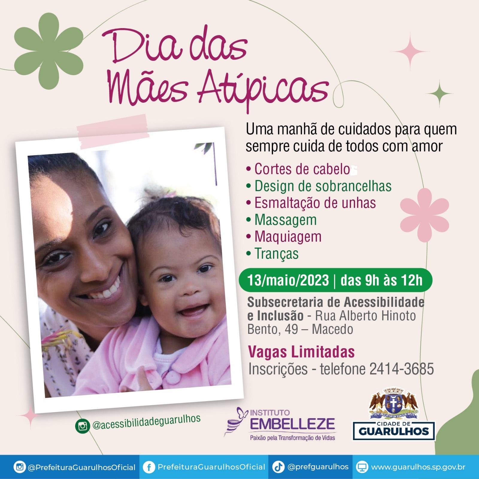 Cinquenta e cinco mães participaram no último sábado (13) de uma manhã especial de cuidados gratuitos de beleza, o Dia das Mães Atípicas – Cuidar de Quem Cuida com Amor, na sede da Subsecretaria de Acessibilidade e Inclusão (SAI), no Macedo. Voltada às mães residentes na cidade com deficiência e as que têm filhos com deficiência, a ação contou com a presença do prefeito de Guarulhos, Guti, que homenageou as participantes.